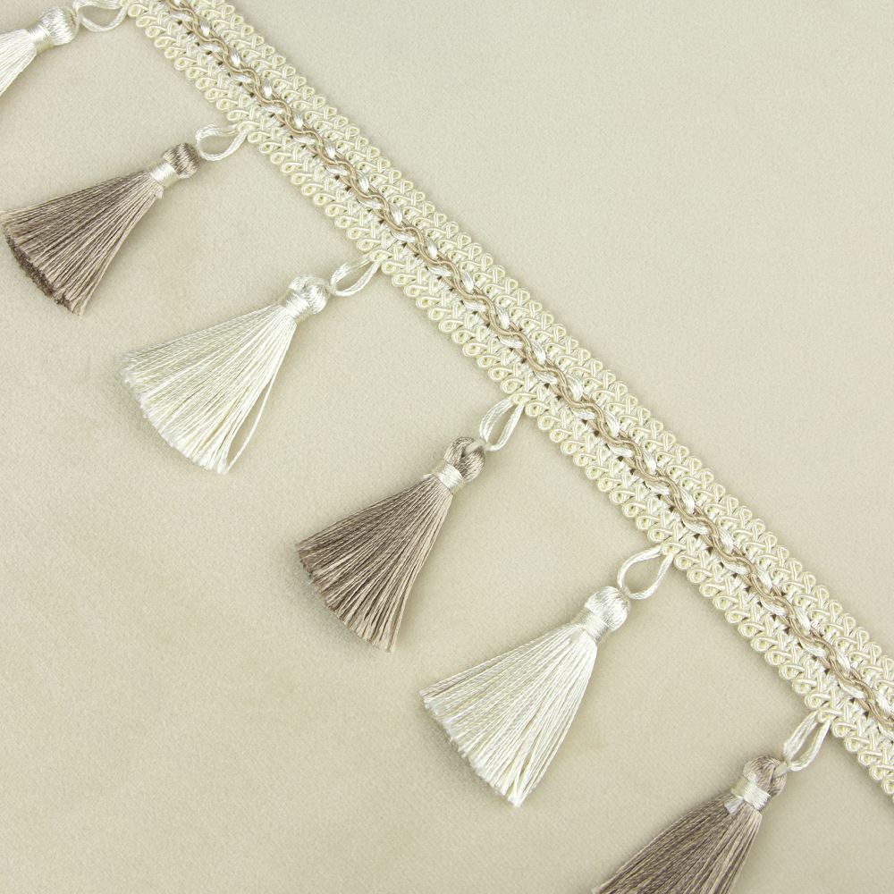 Бахрома с кисточками 9166MRT-V07 светло-бежевый/молочный меланж (9 см)