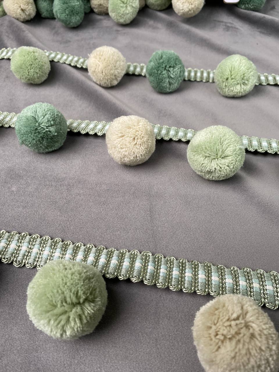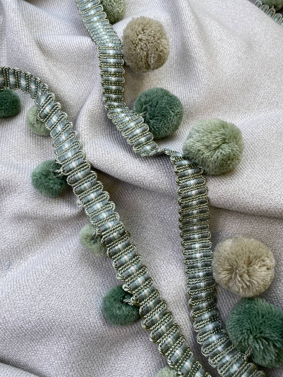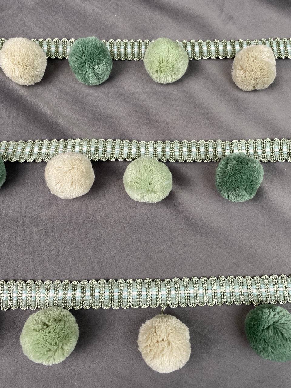 Бахрома с крупными пушистыми шариками DMQ-4 св.-зеленый/фисташковый/св.-бежевый (GREEN) (6.2 см)