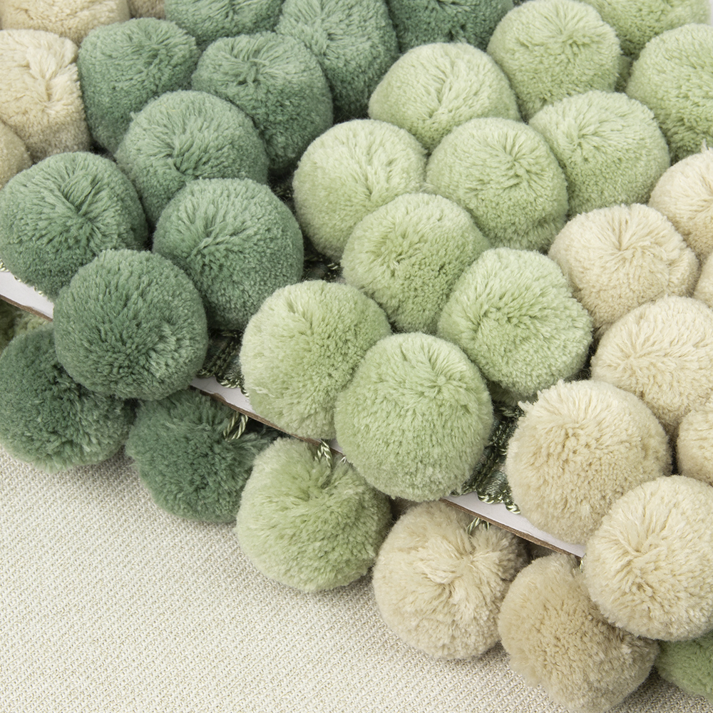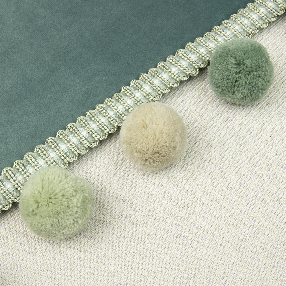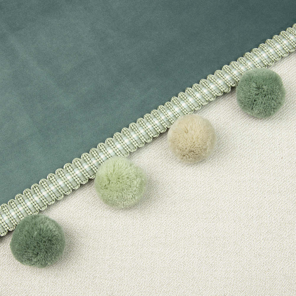 Бахрома с крупными пушистыми шариками DMQ-4 св.-зеленый/фисташковый/св.-бежевый (GREEN) (6.2 см)
