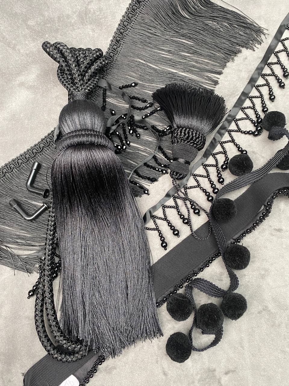 Шторная бахрома с жемчугом. Используется для оформления штор и для украшения скатертей, подушек, покрывал.