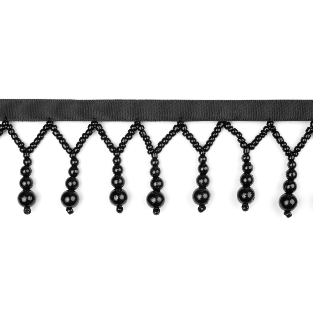 Бахрома с жемчугом 3108 черный (ширина 5 см, декор 4.2 см)