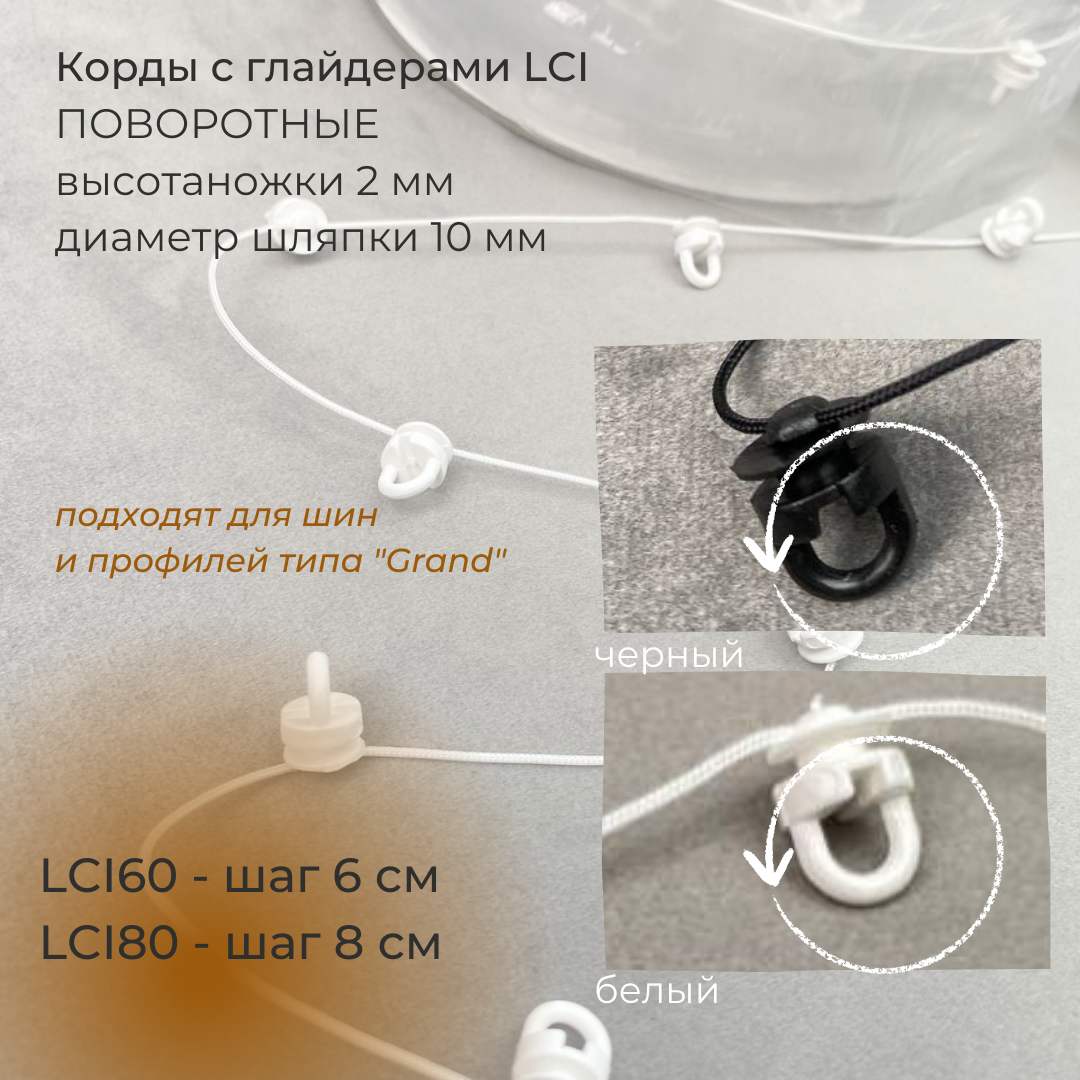 У нас в наличии Корд с глайдерами поворотные для ленты «Система Волна» LCI80-WHITE Oz-is белые (шаг 8 см), артикул 00083487 в отличном качестве.Характеристики