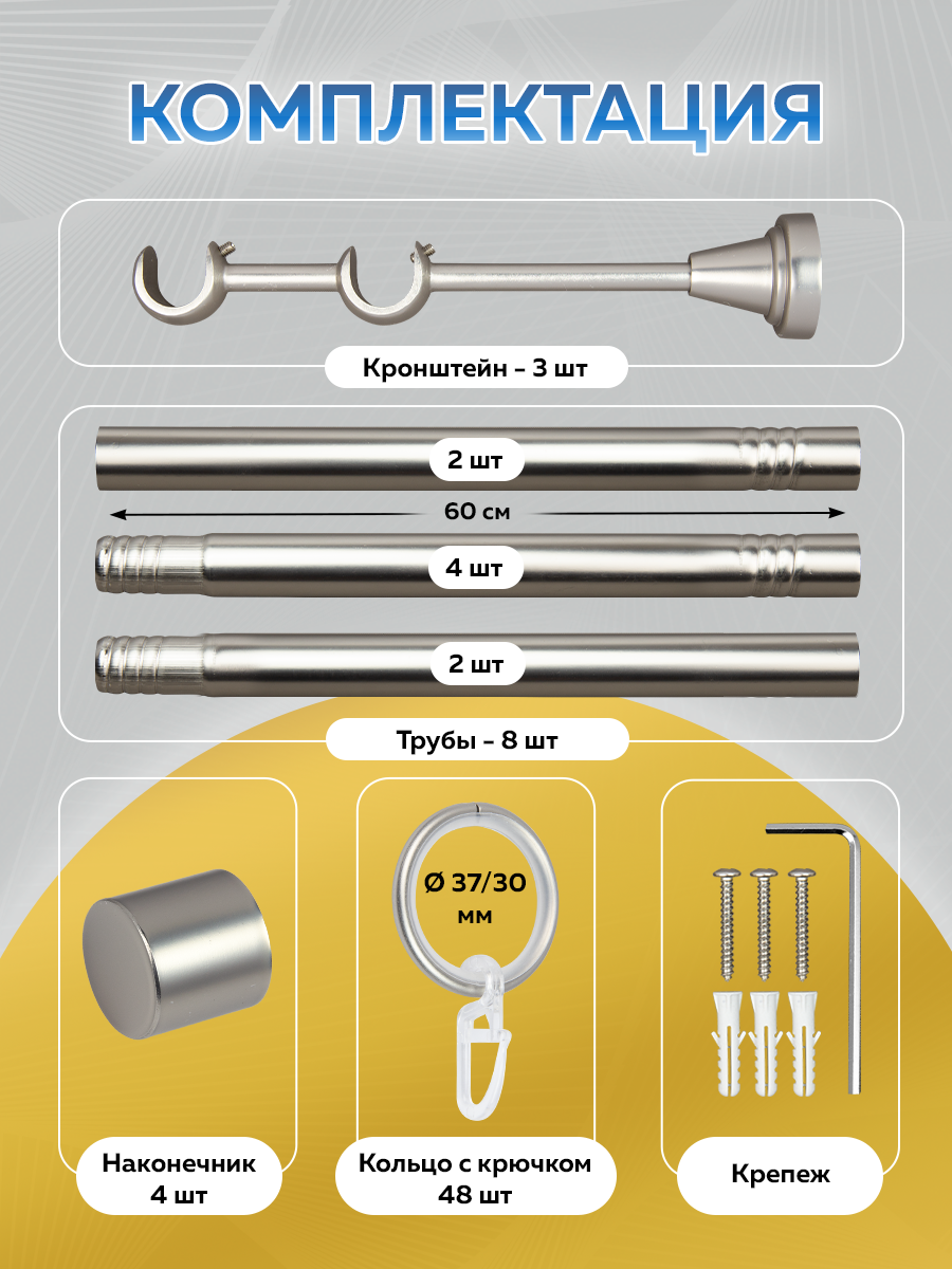 У нас в наличии Карниз 19/19 металлический с резьбовым соединением 2-рядный 2,31 м Сатин, артикул 00086739 в отличном качестве.Характеристики