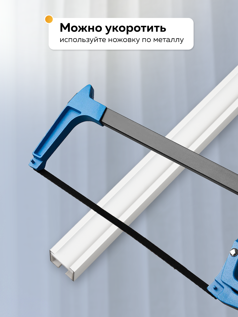 - Длину карниза можно регулировать с помощью составных частей профиля и ножовки по металлу