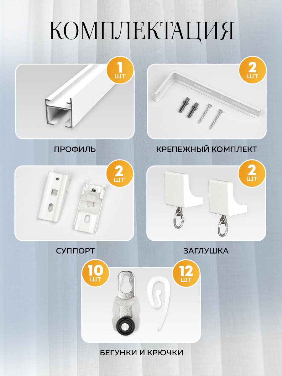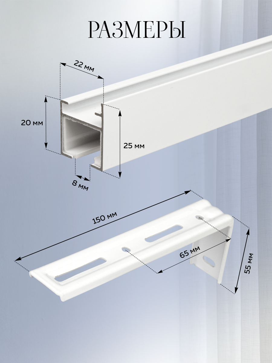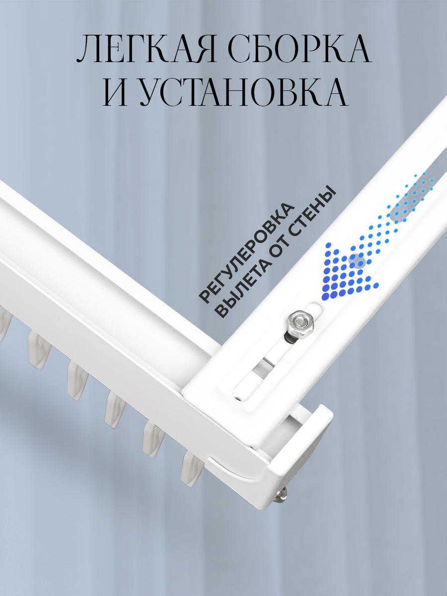 Дополнительно вы можете заказать индивидуальный размер — из расчёта +95 см к длине укомплектованных карнизов.