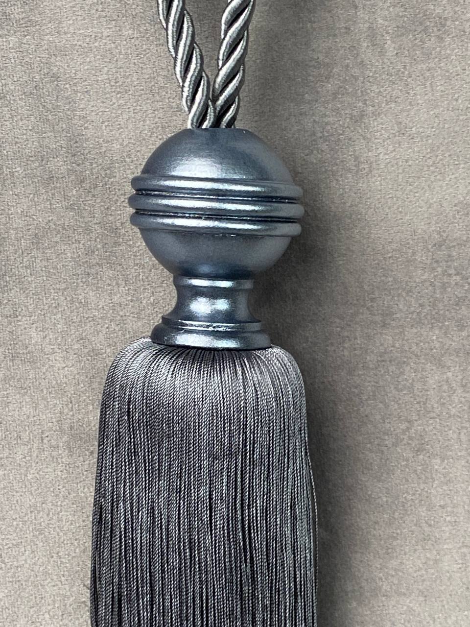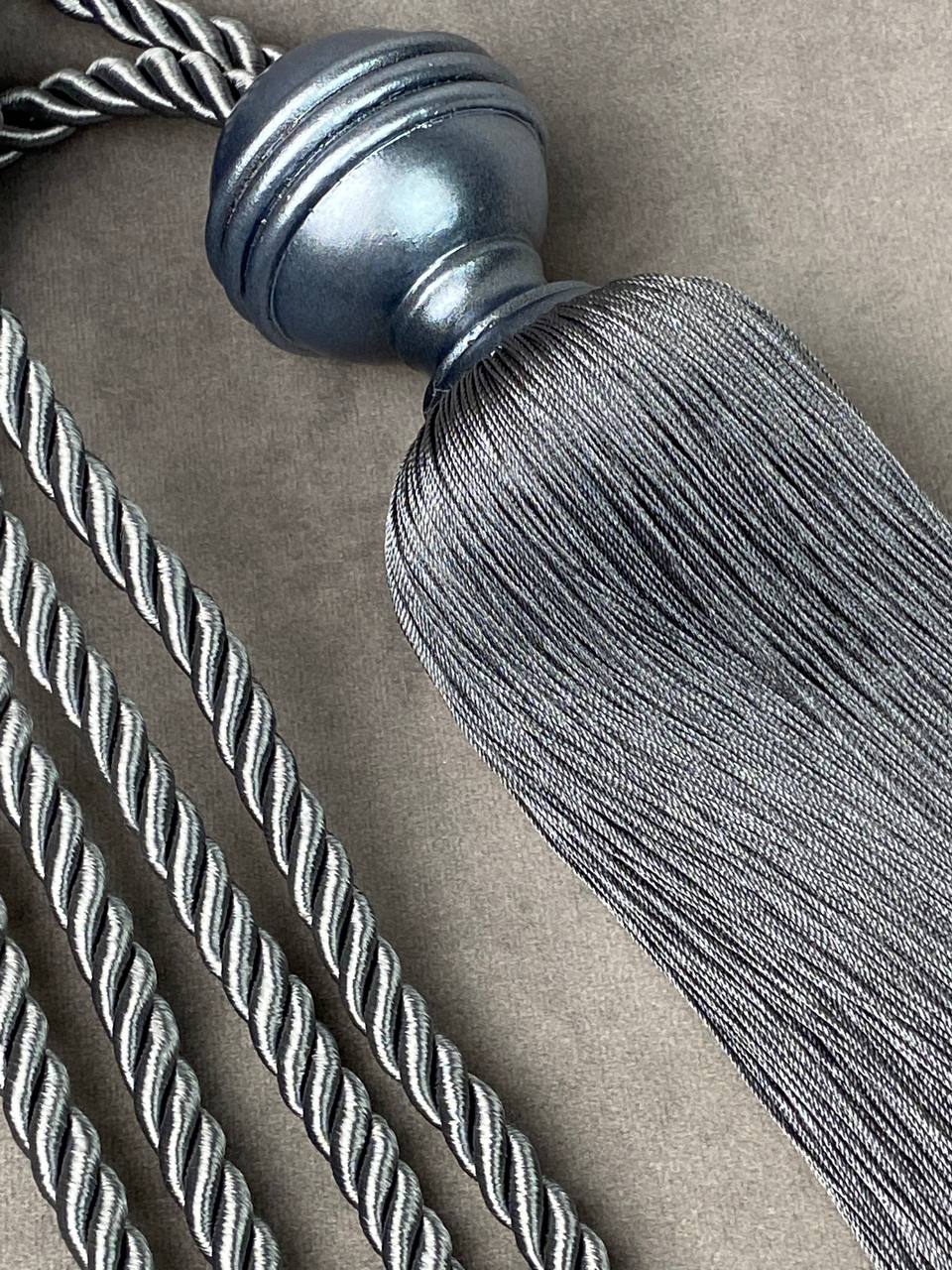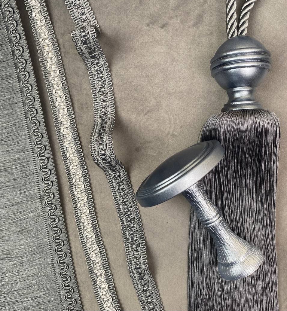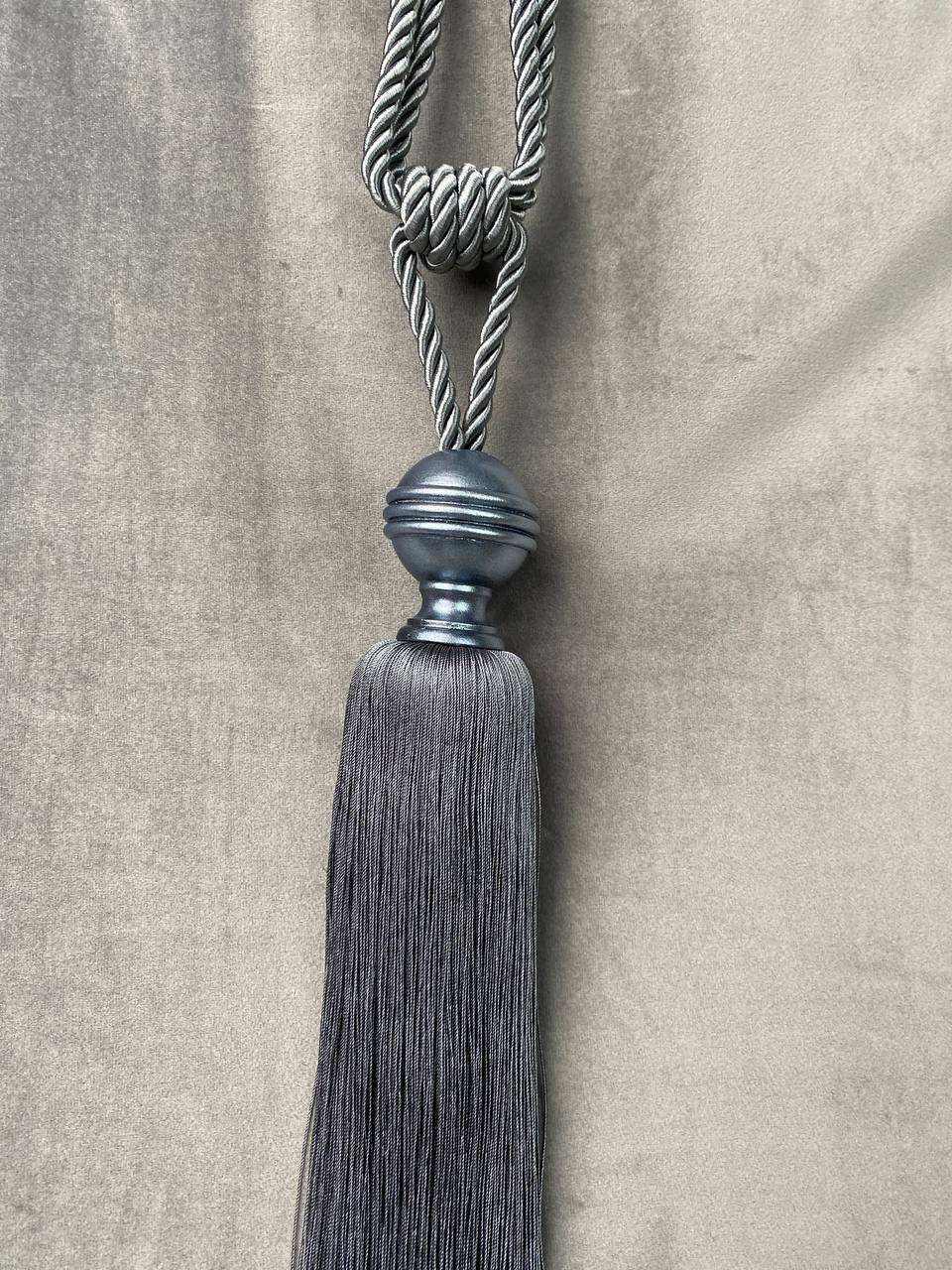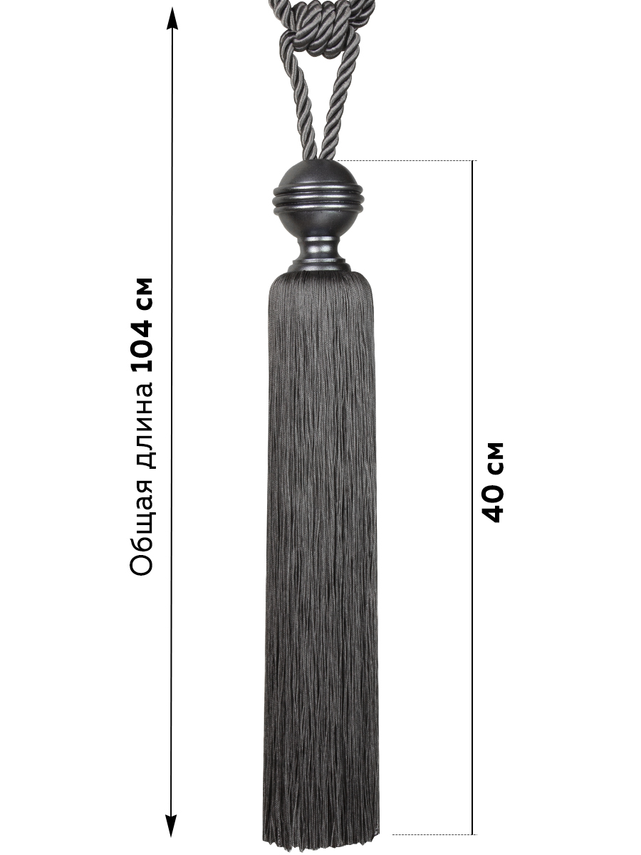 Используется для подхвата и оформления штор, для украшения балдахинов.У нас в наличии Кисть-подхват для штор M12-10 графитовый Mirtex Premium (L100/41см) "Royyana-Round", артикул 00085056 в отличном качестве.Характеристики