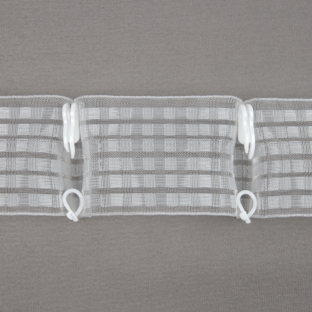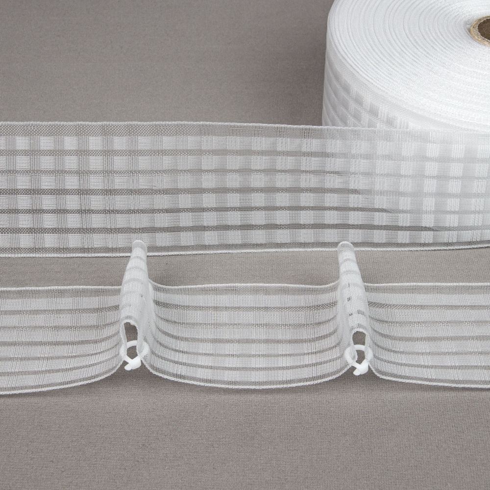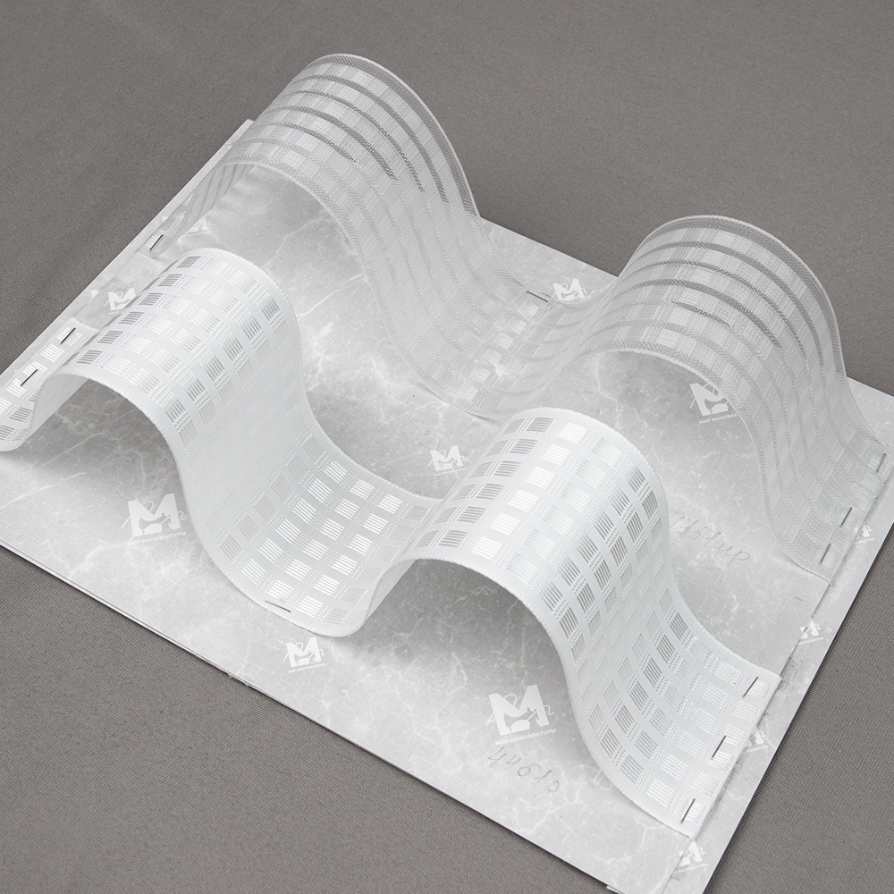 Особенности: ширина 6 см, для ручной закладки штор, как при помощи фурнитуры (крючков, колец), так и при помощи строчек. Многокарманная, удобно регулировать высоту штор. Регулируемый коэффициент, рапорт и выступ самостоятельно.Жесткая, идеально держит форму складки. Большое количество карманов - 6 шт, ниточные, что дает возможность делать шаг вверх и вниз, не только на размер петли, но и на половину петли (меньше или больше) за счет ниточной структуры кармана. Плотные нити у петли - не вытянутся под весом ткани. Полное заполнение карманами (по длине и ширине) - при расчёте любой сборки и складки, не надо учитывать расположение петель. Маленькое расстояние от верхней петли до края и нижней 0.7 см - является двухсторонней лентой из за своего расположения карманов с обеих сторон.