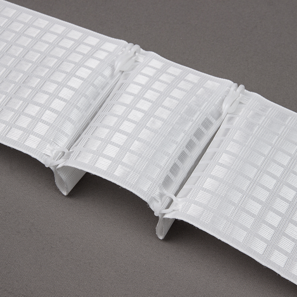 При помощи таких лент можно заложить любую складку, большое количество карманов поможет регулировать высоту, беспрерывные карманы по длине помогут не беспокоиться о расположение крючка, корды не будут выступать через ткань и не надо мучиться их выдергивать.
