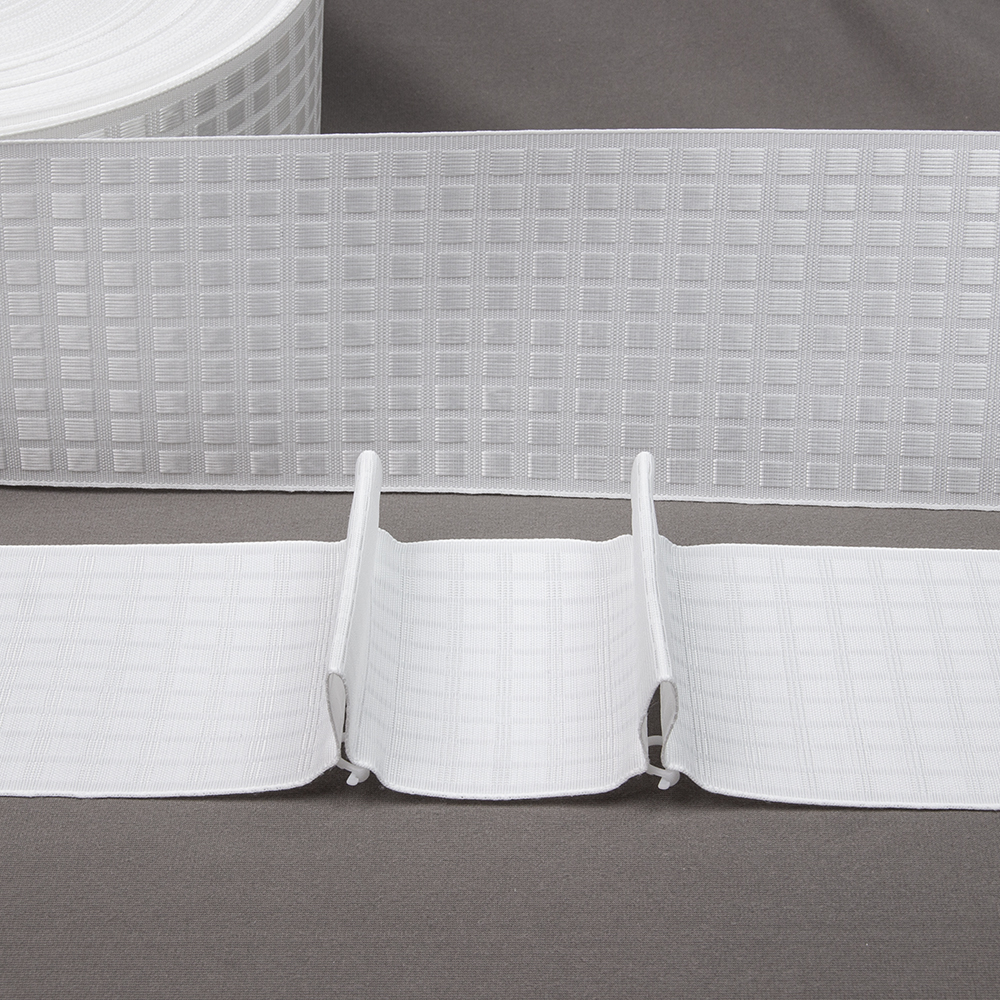 Особенности: широкая 10.3 см, для ручной закладки штор, как при помощи фурнитуры (крючков, колец), так и при помощи строчек. Многокарманная, удобно регулировать высоту штор. Регулируемый коэффициент, рапорт и выступ самостоятельно. Средней жесткости, хорошо держит форму складки. Большое количество карманов - 10 шт, ниточные, что дает возможность делать шаг вверх и вниз, не только на размер петли, но и на половину петли (меньше или больше) за счет ниточный структуры кармана. Плотные нити у петли - не вытянутся под весом ткани. Полное заполнение карманами (по длине и ширине) - при расчёте любой сборки и складки, не надо учитывать расположение петель. Маленькое расстояние от верхней петли до края и нижней 0.5 см - является двухсторонней лентой из за своего расположения карманов с обеих сторон.