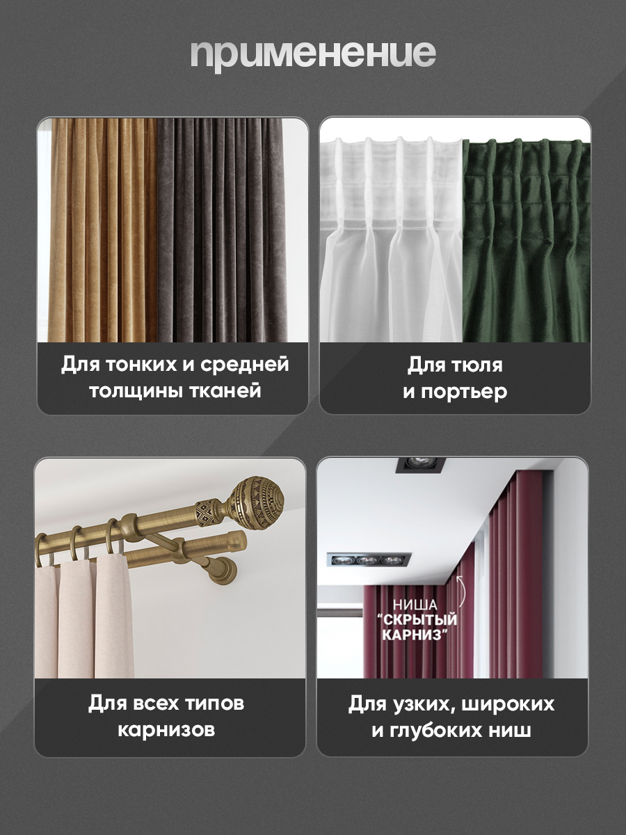 Бренд MirTenda Ширина, (см) 9 Коэффициент Сборки 1:2 Вид Сборки карандашная/столбики Тип Крепления на крючки Количество Карманов 7 Количество Шнурков 4 Коэффициент 1 Материал 100% полиэстер -