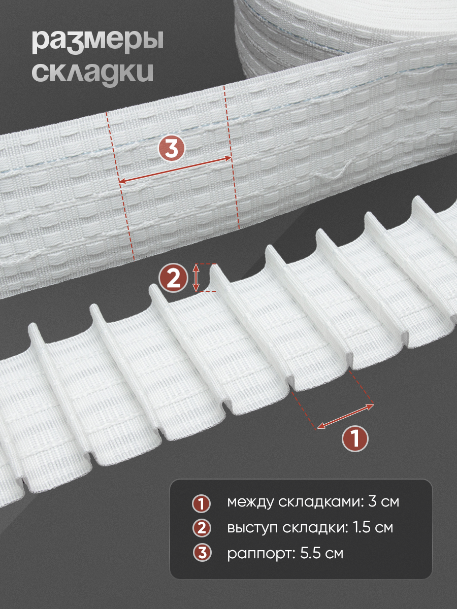 - Между складками: 3 см