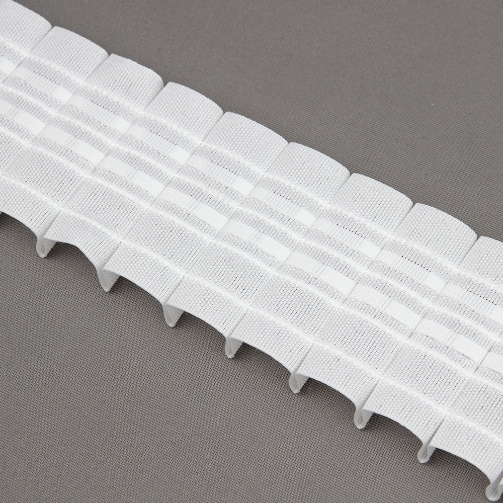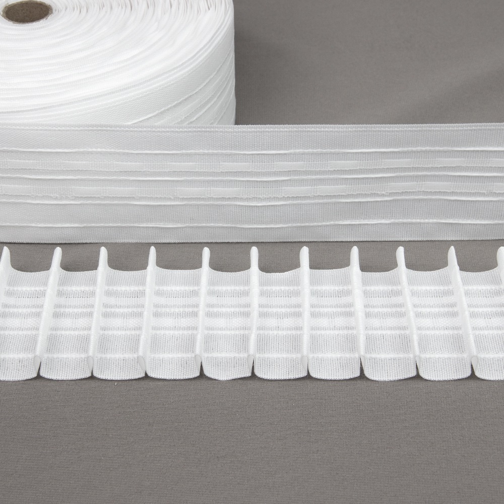 Особенности: средняя ширина 6.3 см, фиксированные складки, низкая цена, пользуется большим спросом для пошива штор на маркетплайсы и эконом-объекты.