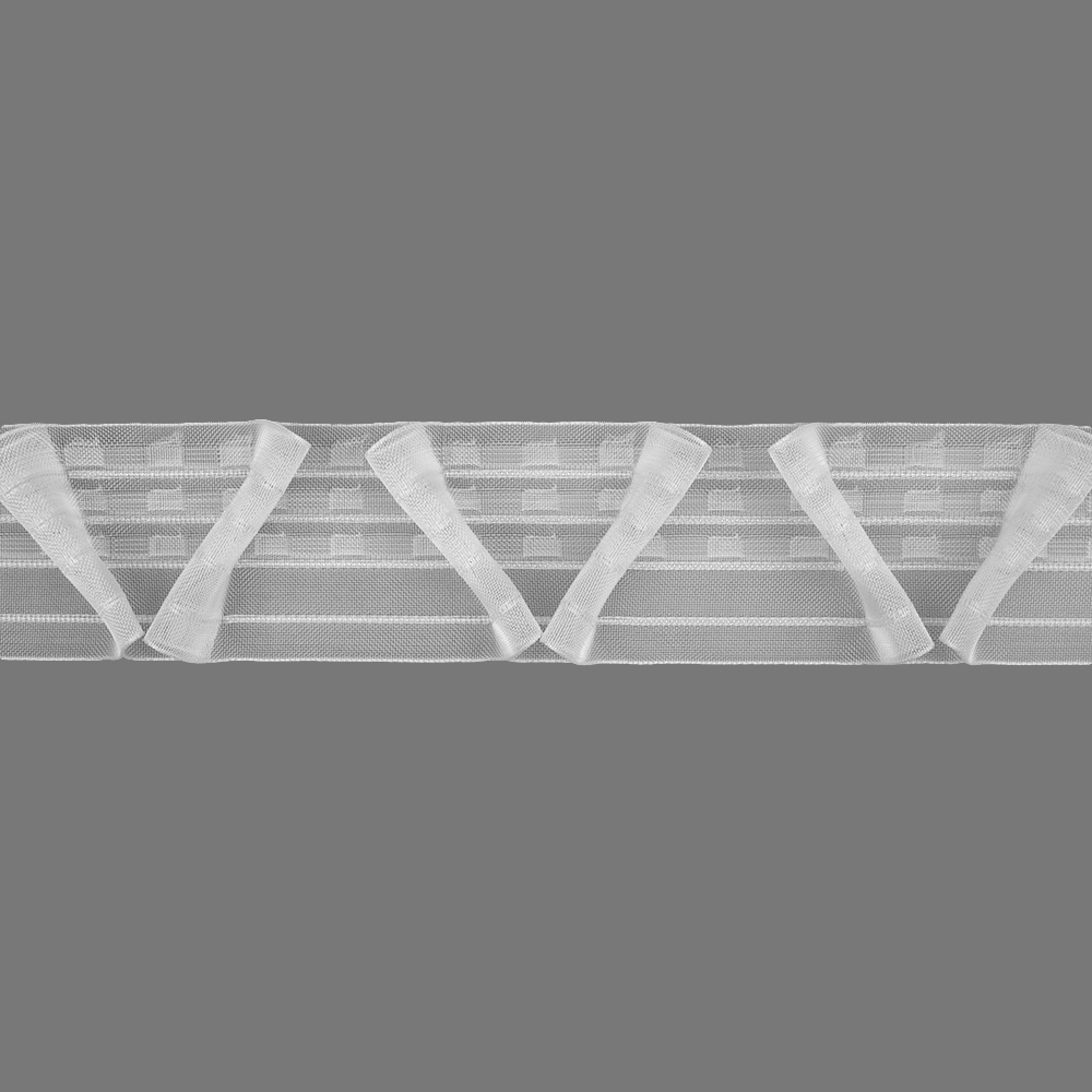 Особенности: ширина 6.3 см, фиксированные, крупные 2.5 см складки, маленькое расстояние от верхней петли до края ленты. Третий ряд карманов проходит по центру ленты, что позволяет не дошивать гребешок у шторы, а использовать это крепление или регулировать высоту готового изделия. Подойдет для тонких и толстых тканей. Достаточно большой выступ складки 2.5 см, подчеркнет сборку у шторы. При этом учитывать расстояние между направляющими карниза и ширину ниши. Широкие петли - подойдет для тяжелых штор.