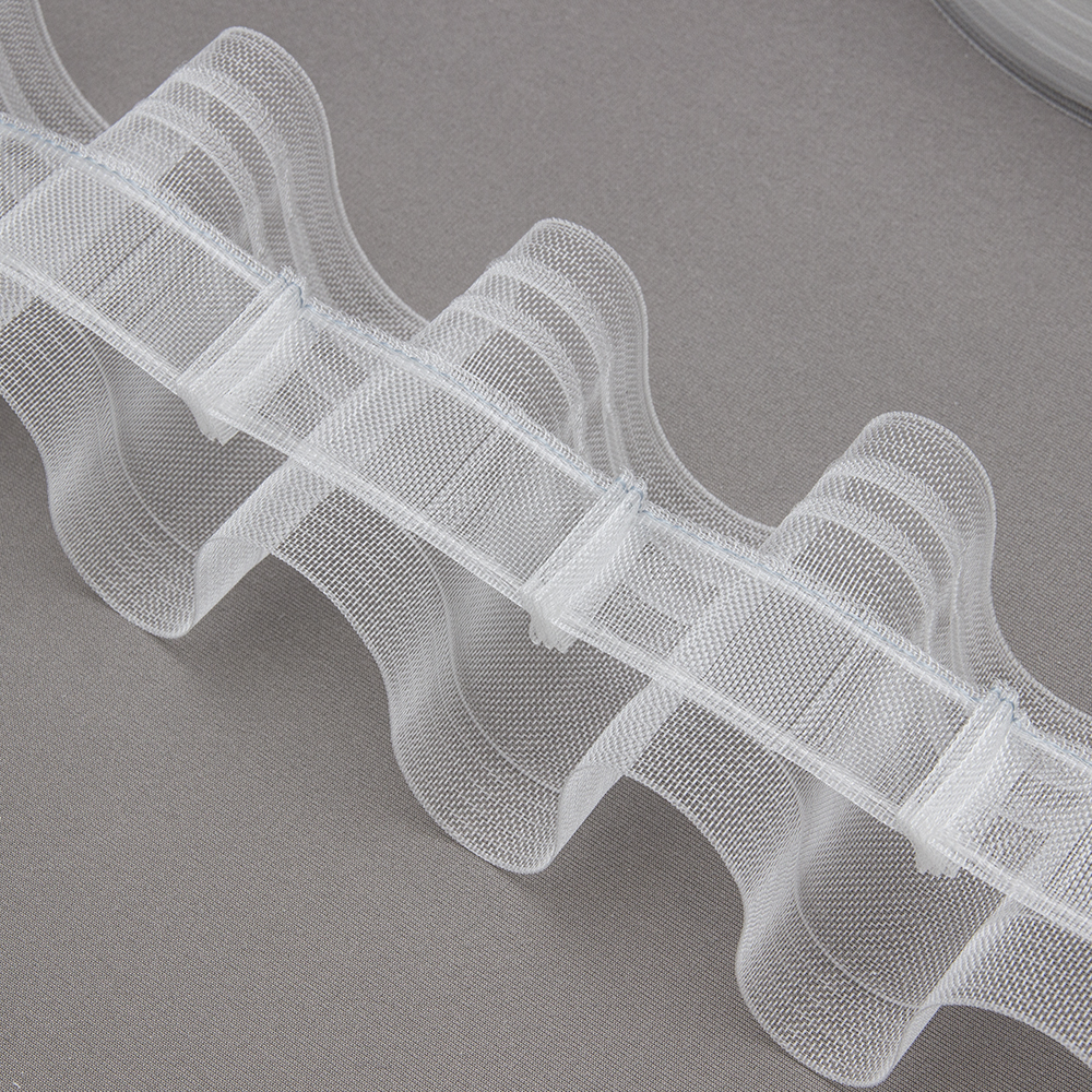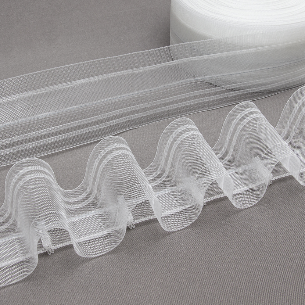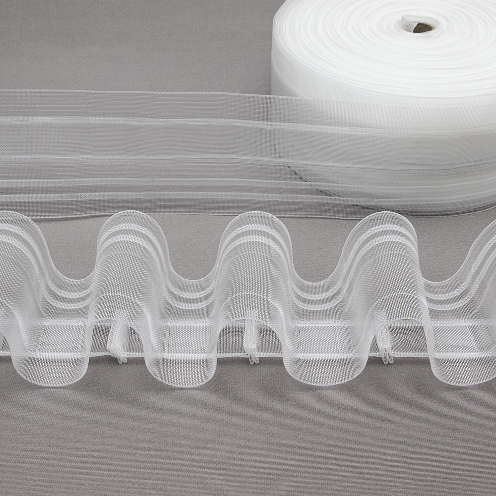 Шторная лента "Волна" 1588Т (1:2) MirTenda Premium "Волна" прозрачная 8 см (корд-2 лески, 2 кармана)
