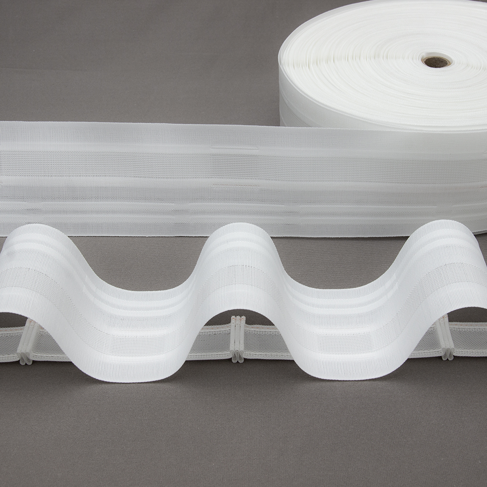Шторная лента MirTenda Premium тканая. Сборка "Волна". Крепление на крючки только внутри волны.