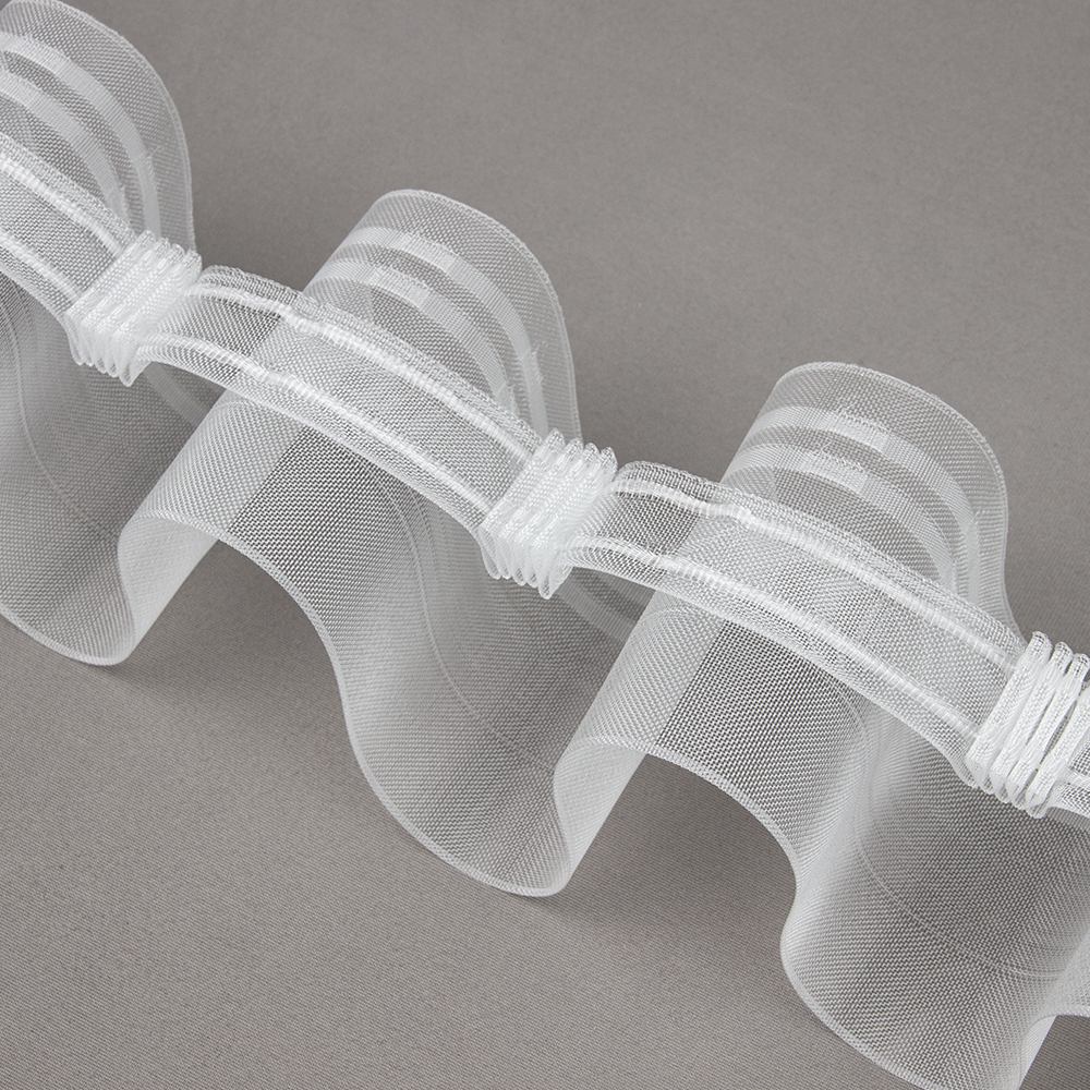 Рекомендации при пошиве: пристрачивать двумя строчками, учитывать количество "Волн" на изделии, учитывать раппорт. Делать точные замеры при крое. Не подходит для нашивания "гребешка". Не прокладывать второй слой ткани под ленту, воизбежание пузырьков во внутрей складке.