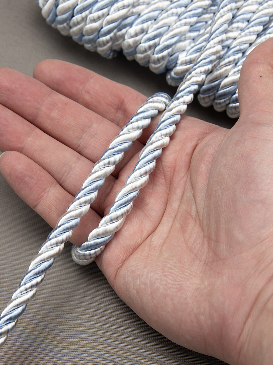 Шнур шторный SH используется для декорирования штор,покрывал, подушек, а также мебели . Убранство современного дома отличается линиями и безупречными формами. Подчеркнуть изящество штор, подушек и покрывал помогает шторный шнур.У нас в наличии Шнур витой SH006 белый/голубой (d7-9 мм), артикул 00057208 в отличном качестве.