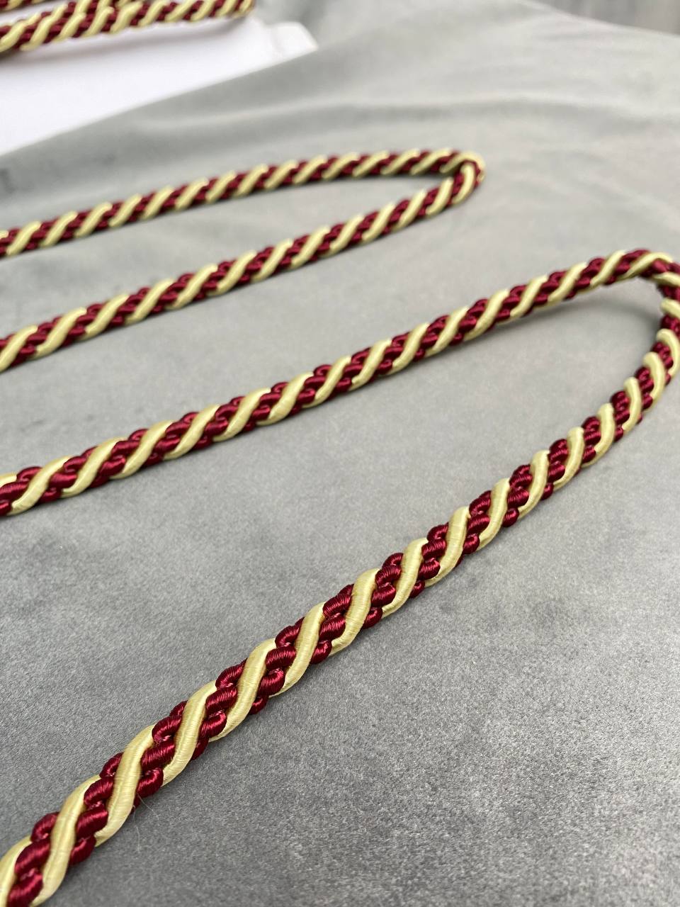 Шнур шторный SH используется для декорирования штор,покрывал, подушек, а также мебели . Убранство современного дома отличается линиями и безупречными формами. Подчеркнуть изящество штор, подушек и покрывал помогает шторный шнур.У нас в наличии Шнур витой SH20-5 бордо/золото (искусственный шёлк), артикул 00026983 в отличном качестве.