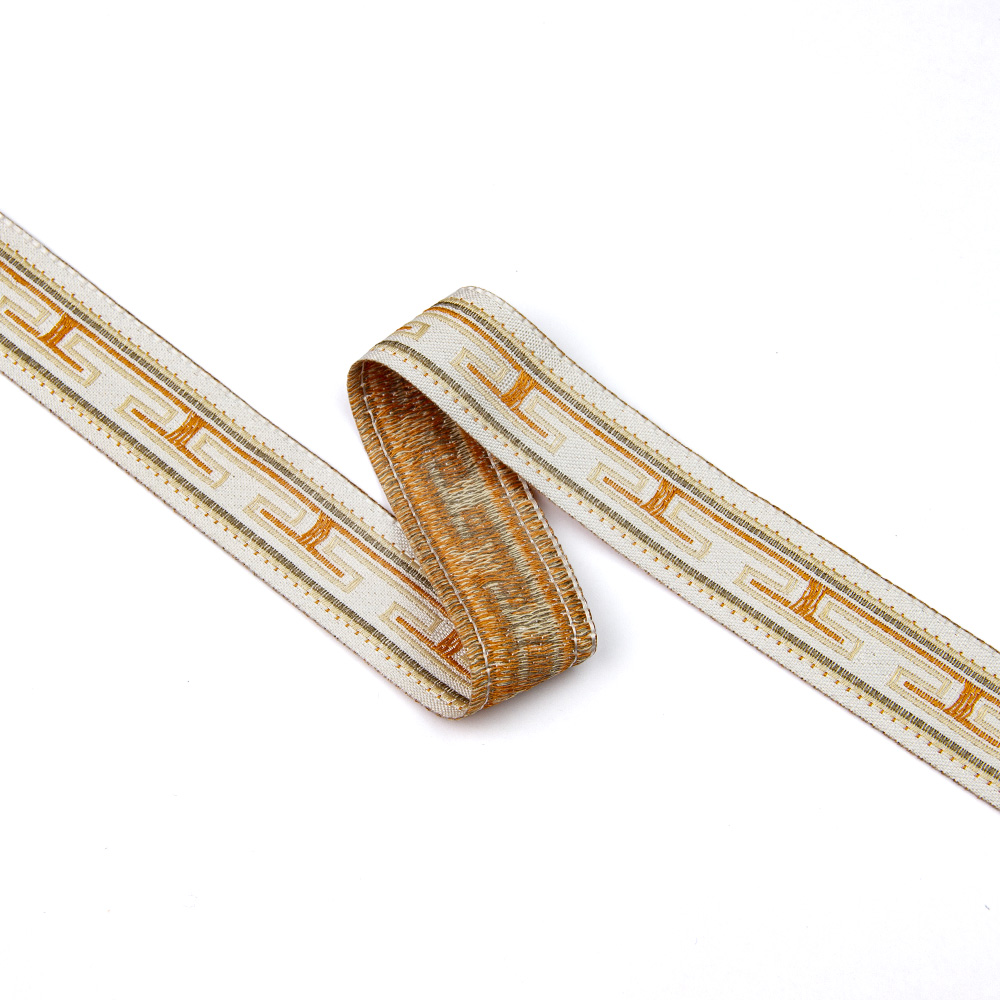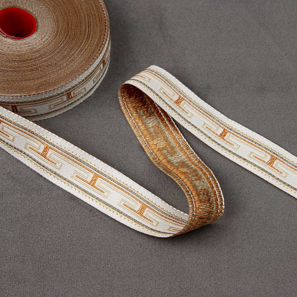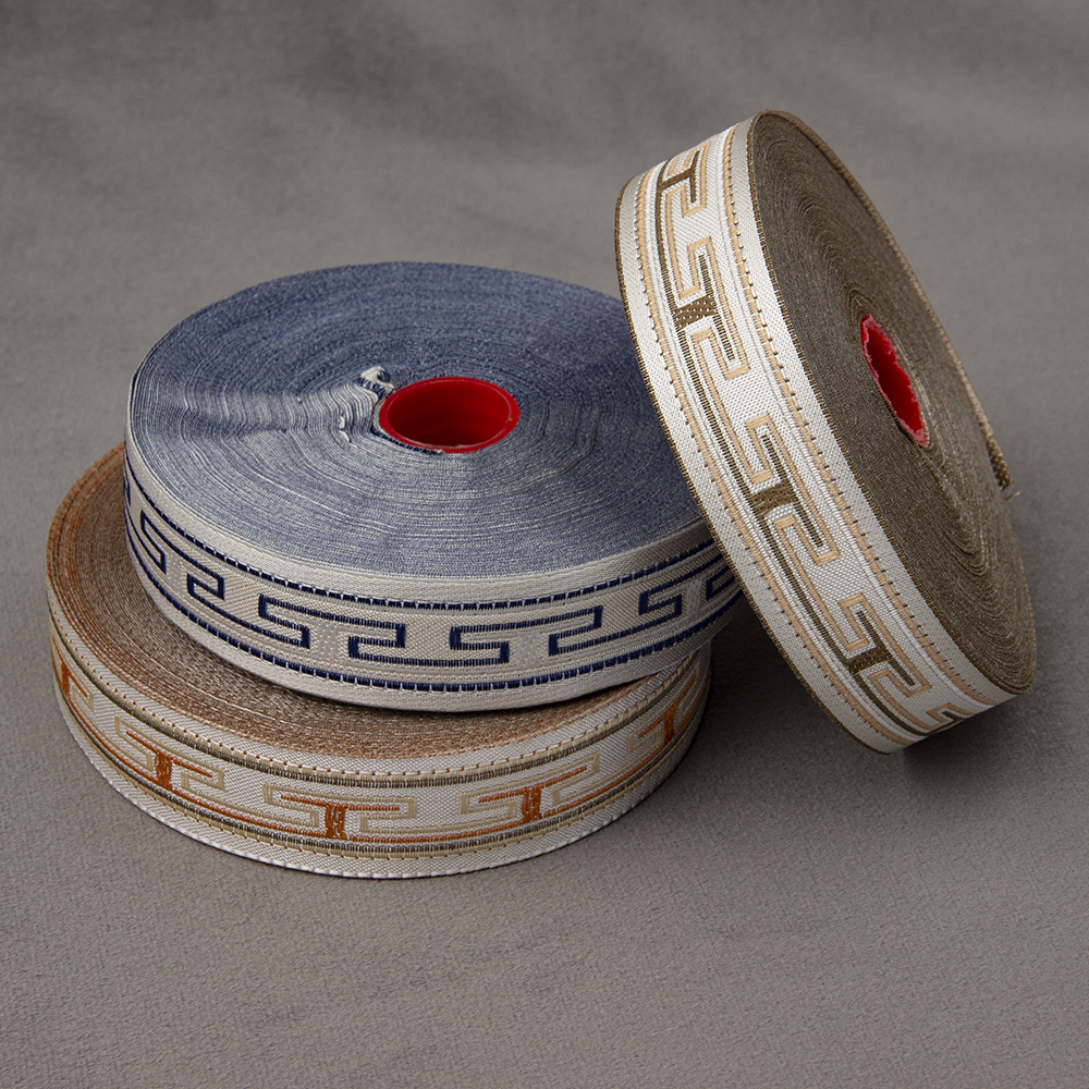 Особенностью жаккардовых лент, является их плотность. Их узор устойчив на протяжении многих лет.Такие ленты широко используются в швейном деле, для декорирования штор, портьер, постельного белья.