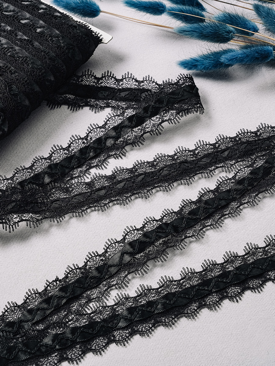 Тесьма с кружевом — стильный и изысканный декоративный элемент для украшения одежды, текстиля, аксессуаров и предметов интерьера. Черная кружевная тесьма с утонченным узором добавит вашему проекту элегантности и изящества.
