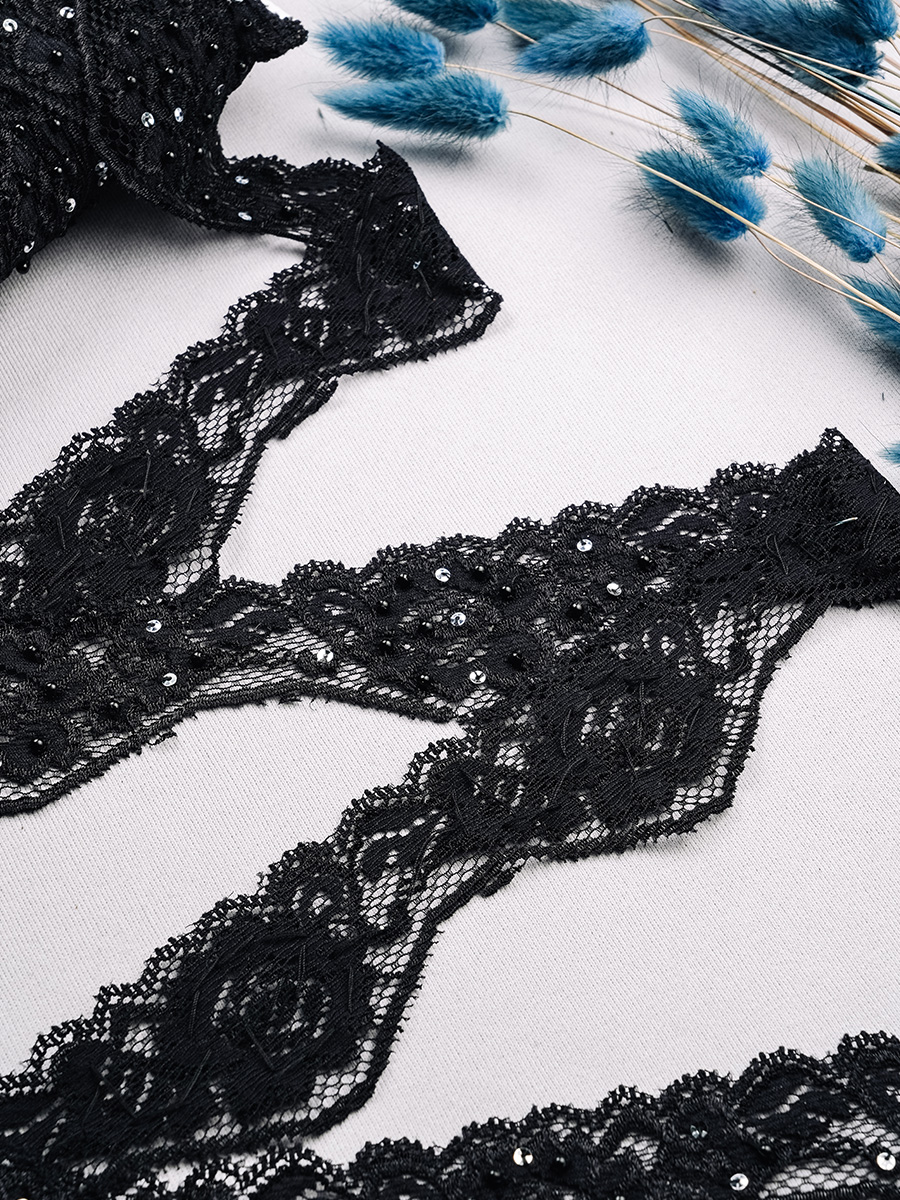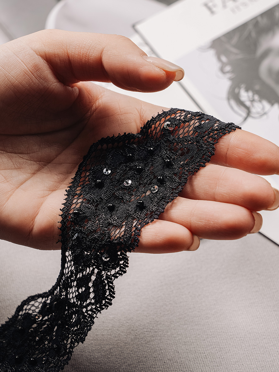 Тесьма-это особая декоративная ткань,выпускаемая в виде полос или лент разной ширины. Тесьма используется,как правило,для конечной отделки уже готовых изделий. Тесьма 0303 выпускается в виде капронового эластичного кружева вышитого стеклярусом,бисером и пайетками. Состав: 67% вискоза, 30% полиэстер, 3% эластан. Используется для отделки мужских,женских и детских костюмов.У нас в наличии Тесьма с бисером и пайетками 0303B черный, артикул 00013348 в отличном качестве.