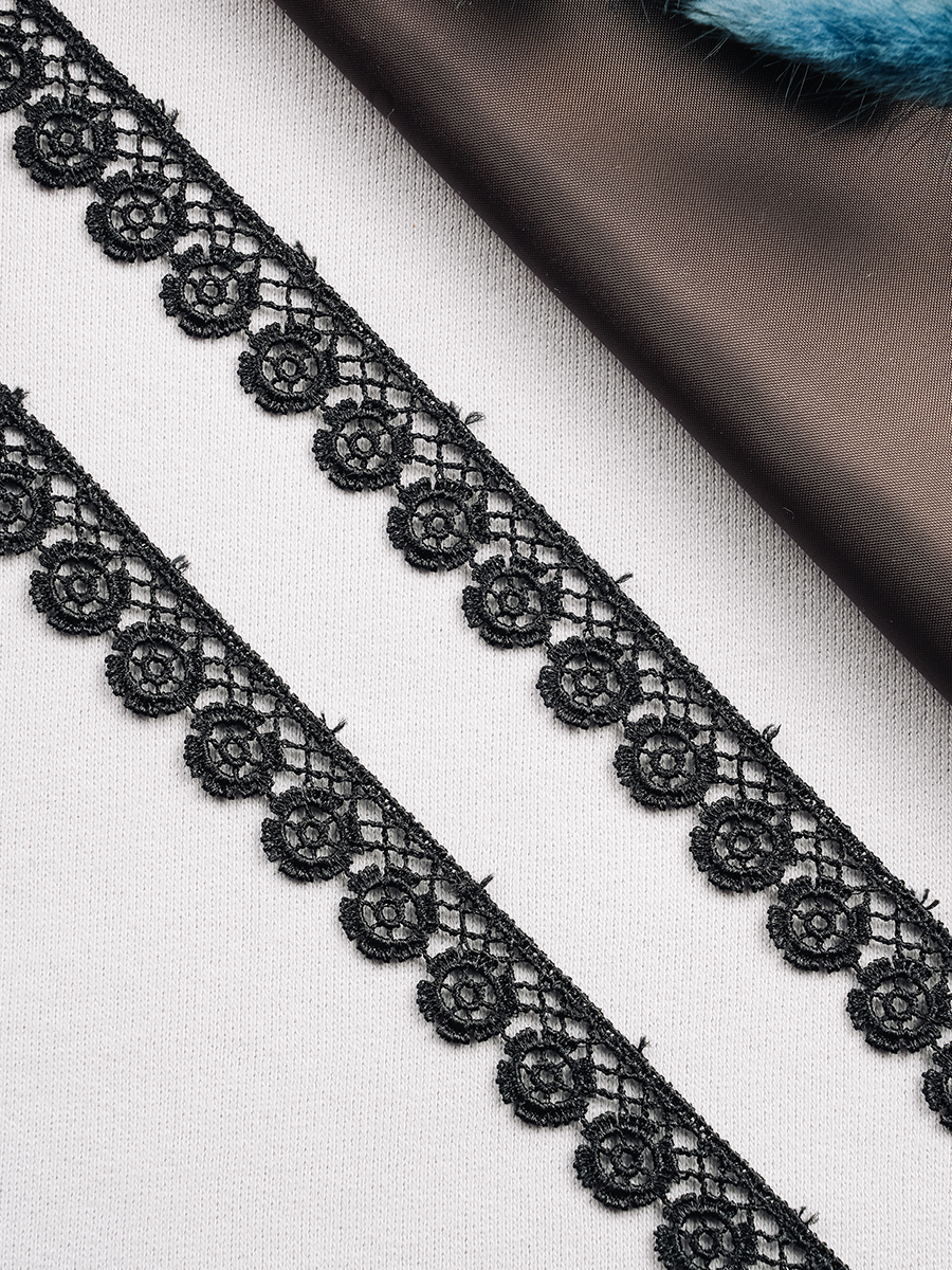 Применяется для декоративной отделки изделий из текстиля, а также при изготовлении головных уборов и кожгалантереи.У нас в наличии Тесьма вязаная 33403B-D103 черный, артикул 00017591 в отличном качестве.Характеристики