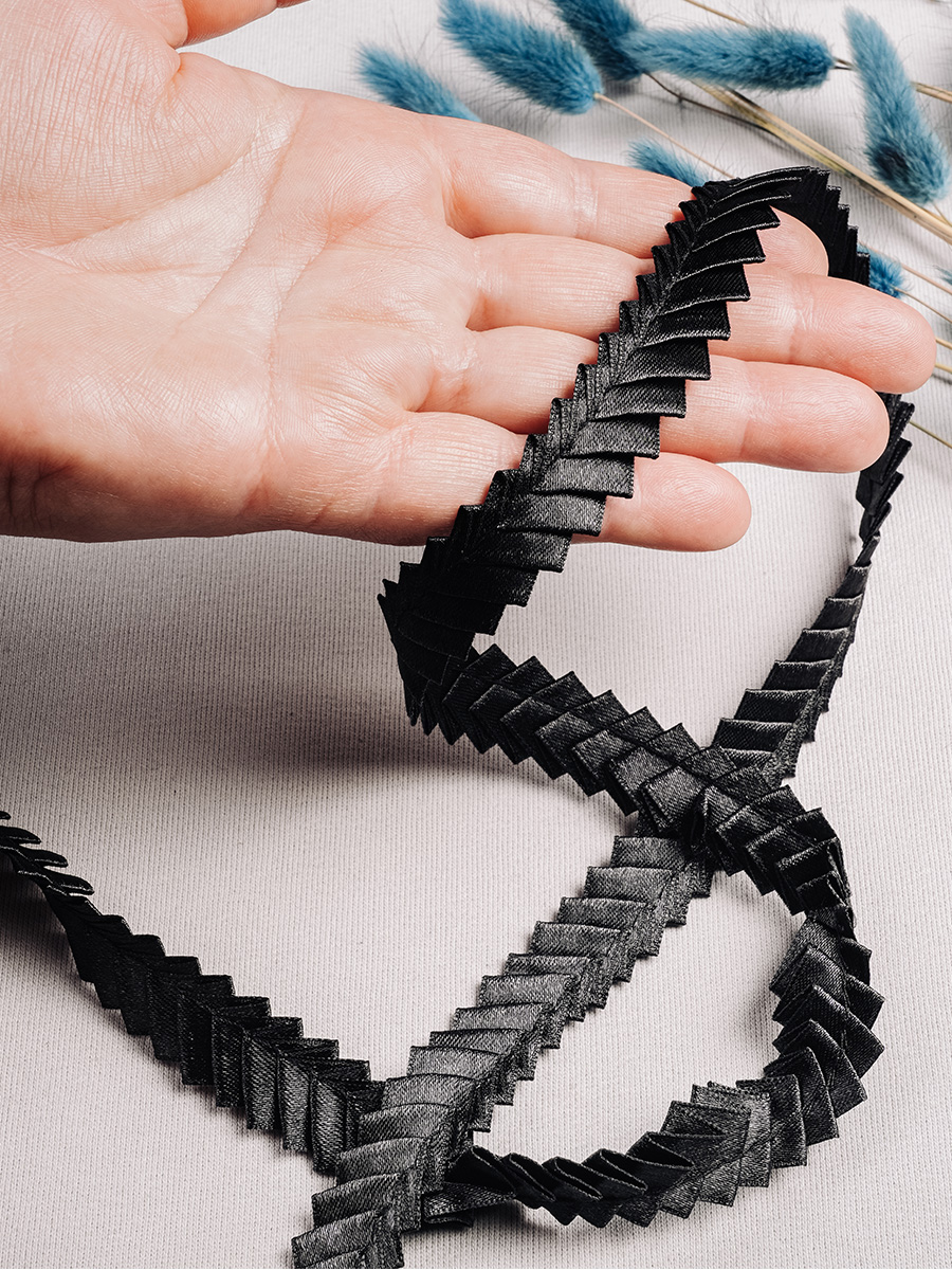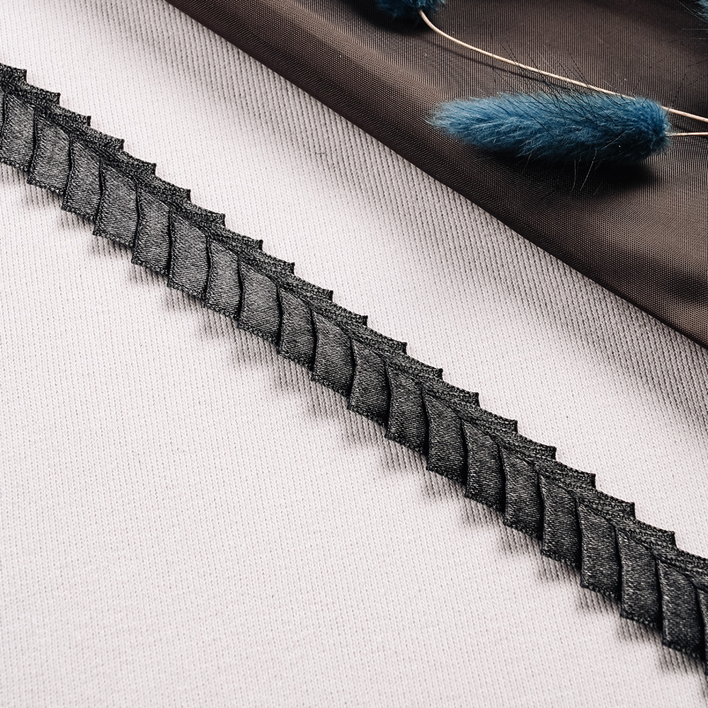Оборка-полоса материи,собранная с одной стороны и прошитая складками или сборками.В зависимости от стиля и типа изделия, для украшения используют однослойные или двухслойные оборки.Однослойные изготавливаются из присборенной одинарной полоски ткани.Внешний край оборки отделывается двойной подгибкой или контрастным по цвету кантом.Для изготовления двухслойной оборки ткань складывается пополам по ширине.Двойной слой ткани придает оборке объемность и плотность,а сгиб делает ее очертания плавными и четкими.Кроме того,двойная оборка хорошо держит форму и не обвисает. Применяется для декоративной отделки изделий из текстиля.У нас в наличии Тесьма-оборка 201201HT-1 черный, артикул 00031235 в отличном качестве.