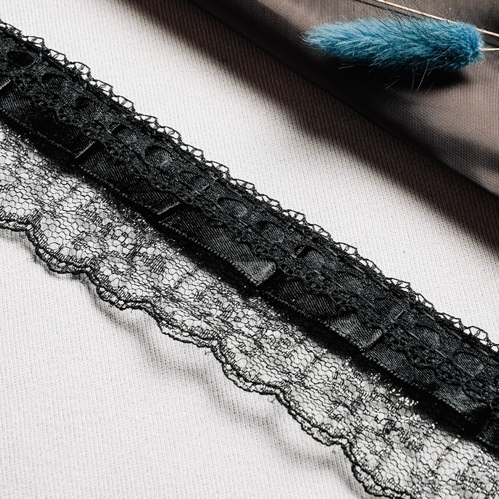 Оборка-полоса материи,собранная с одной стороны и прошитая складками или сборками. Применяется для декоративной отделки изделий из текстиля.У нас в наличии Тесьма-оборка 217HT-B черный/серый, артикул 00017307 в отличном качестве.