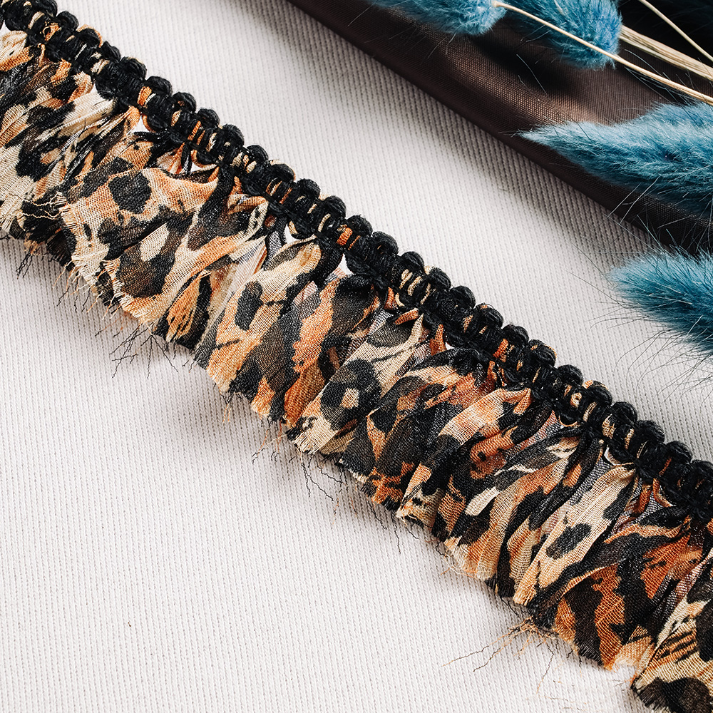 Тесьма-оборка - полоса материи,собранная с одной стороны и прошитая складками или сборками. Применяется для декоративной отделки изделий из текстиля.У нас в наличии Тесьма-оборка CF01-37 бежевый/черный, артикул 00019049 в отличном качестве.