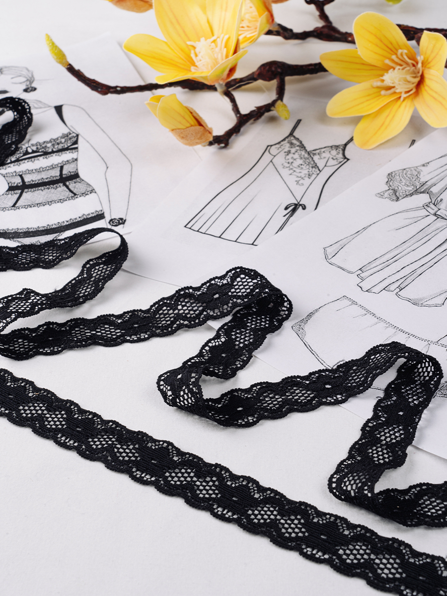 Кружево эластичное - узорчатая сетчатая ткань из ниток для отделки белья, детской одежды, платьев.