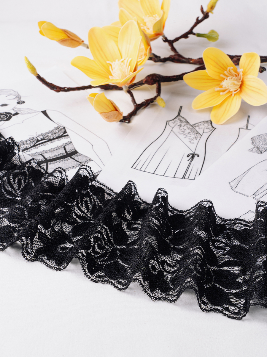 Состав: 67% вискоза, 30% полиэстер, 3% эластан. Кружево эластичное - узорчатая сетчатая ткань из ниток для отделки белья, детской одежды, платьев. Кружево для отделки нижнего белья с каждым днем становится все более роскошным. Узоры кружевных полотен выполняются по природным мотивам и в стиле Ар-Нуво (Ар-Нуво примечателен, прежде всего, извилистыми и плавными очертаниями, линия в этом стиле приобретает самостоятельное значение как средство выразительности. Линия же является основой орнамента, выполняя стилеобразующую функцию, становясь воплощением красоты.).У нас в наличии Кружево эластичное 2823 черный, 9,5 см, артикул 00028304 в отличном качестве.