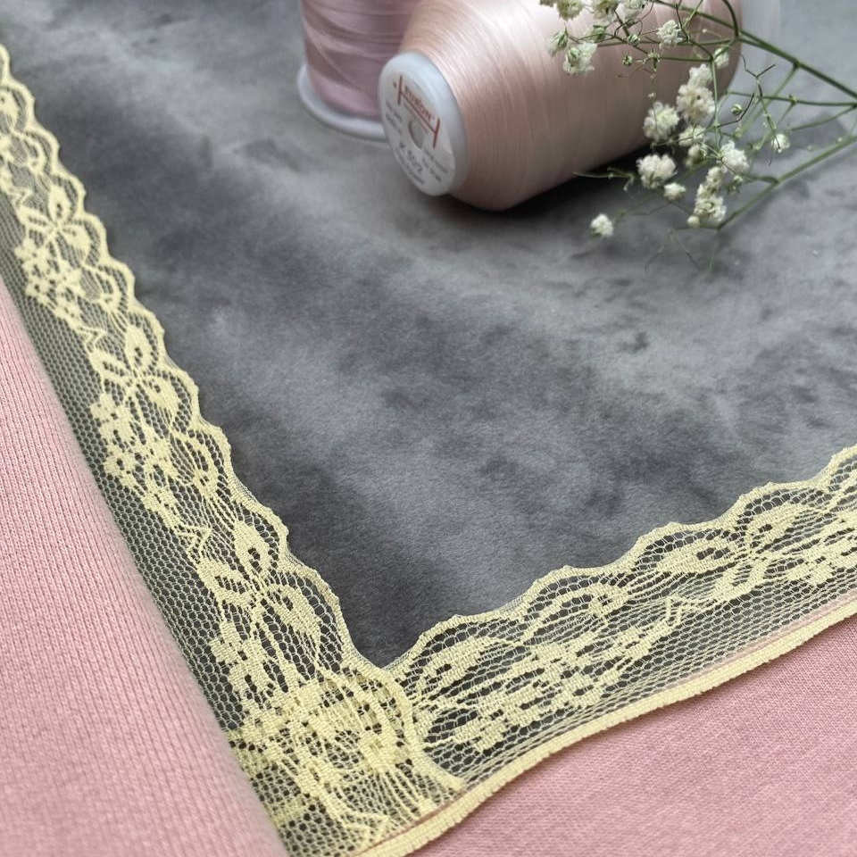 Кружево-узорчатая сетчатая ткань из ниток для отделки белья, детской одежды, платьев и украшения домашней обстановки, а в последнее время часто используют для декора головных уборов.