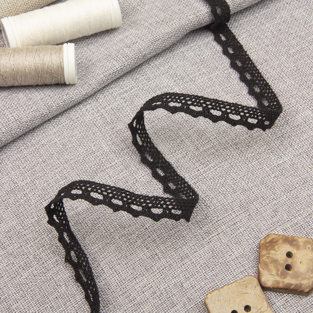 Кружево вязанное - узорчатая сетчатая ткань из ниток, где ажурный рисунок образуется в результате переплетения. Используется в отделке белья, женской и детской одежды, головных уборов, кожгалантереи, обуви и для украшения домашней обстановки.У нас в наличии Кружево вязаное 0019B-QY черный, 1 см, артикул 00018800 в отличном качестве.