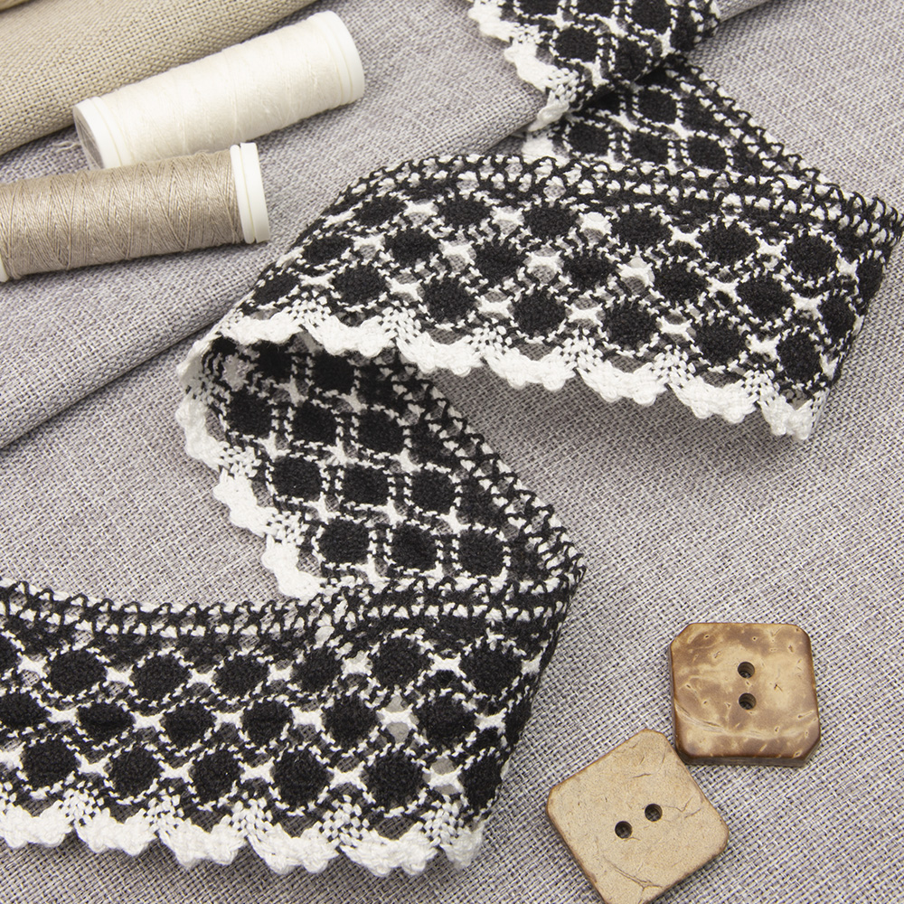 Кружево вязаное AJL9233 черный/белый, 5 см