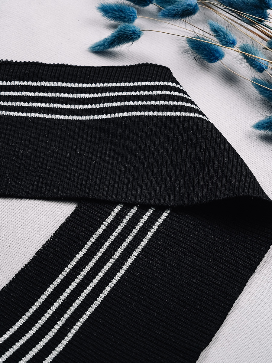 Манжет трикотажный с люрексом 802 серебро/черный (1 шт=0,85 метров)