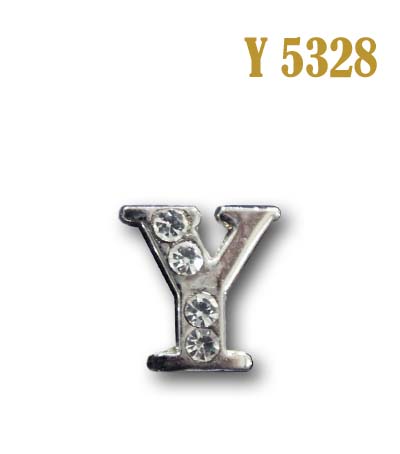 Буква - Y, выпуклая со стразами, литая металлическая, со сквозной прорезью по всей ширине для вдевания ленты, шнура и т.п.