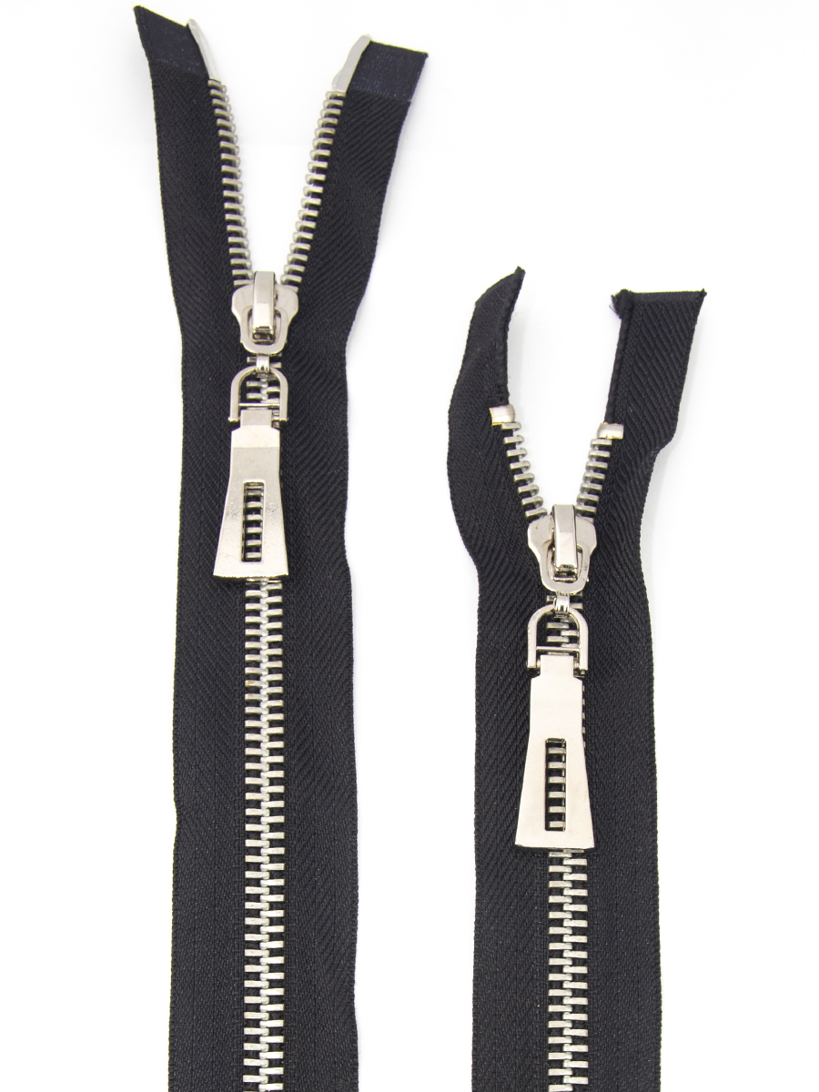 Молния металл разъемная двухзамковая - это устройство, состоящее из двух текстильных лент, на которых закреплены металлические звенья, соединяемые при движении слайдера.