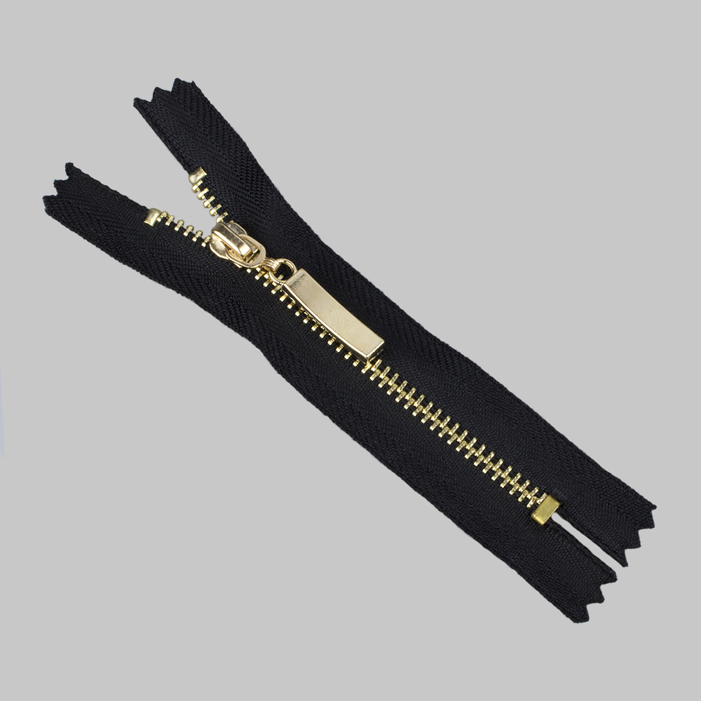 Молния металлическая неразъемная (пуллер прямой) 18 см Т3 русское золото/черный
