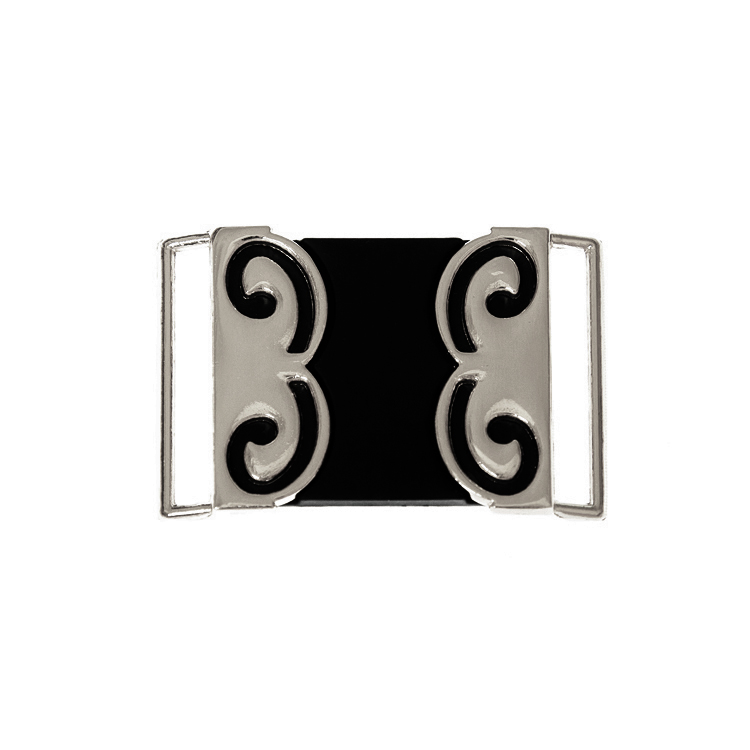 Может использоваться как декоративный элемент на женскую группу одежды, в кожгалантерее и как украшение на головные уборы.У нас в наличии Пряжка 5974 никель/черный, артикул 00028700 в отличном качестве.