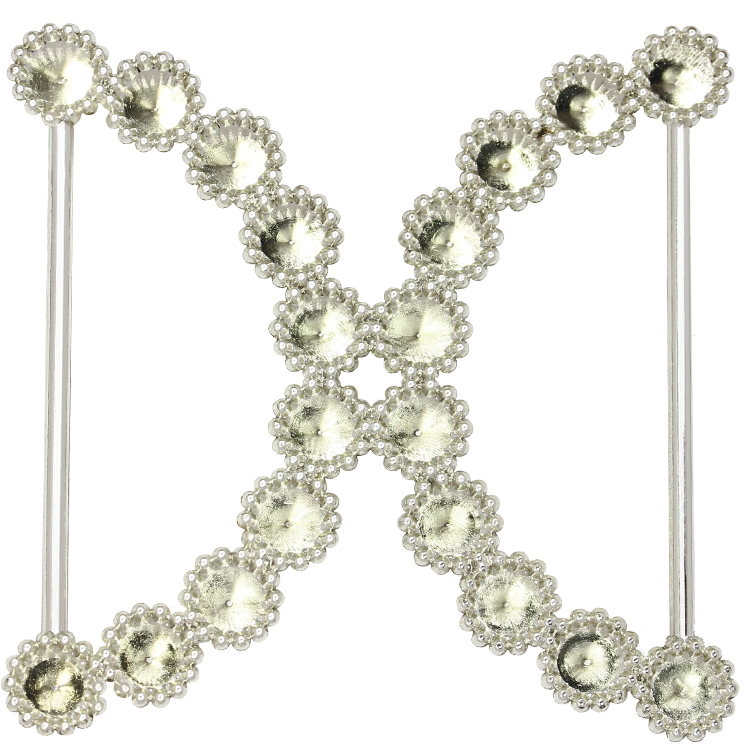 Может использоваться как декоративный элемент на женскую группу одежды, в кожгалантерее и как украшение на головные уборы.У нас в наличии Пряжка пришивная 5592 серебро, артикул 00029649 в отличном качестве.