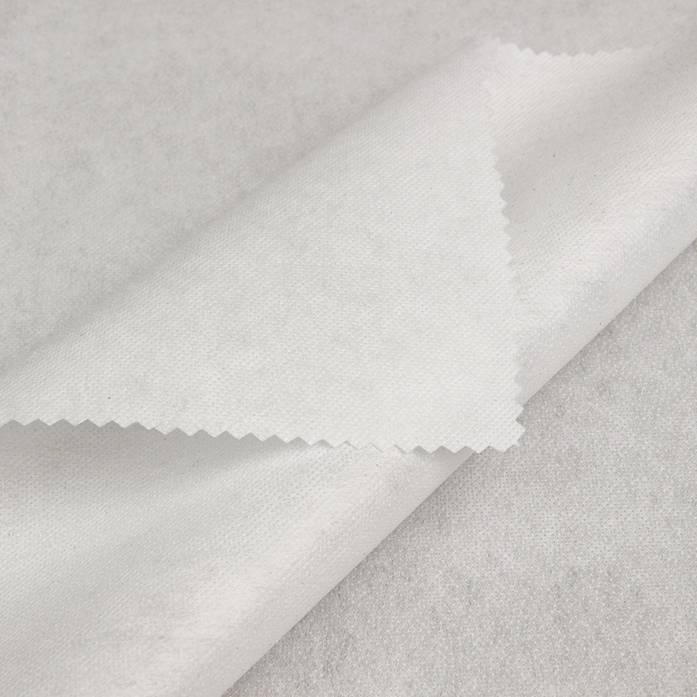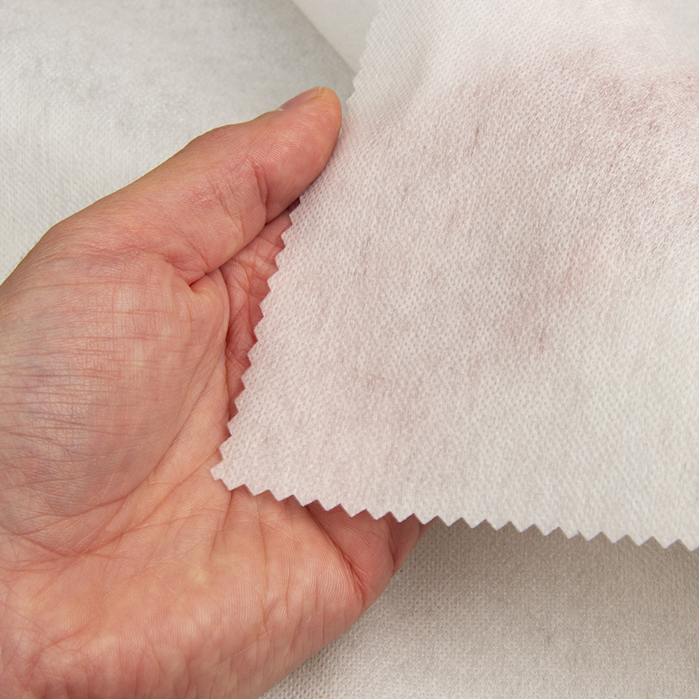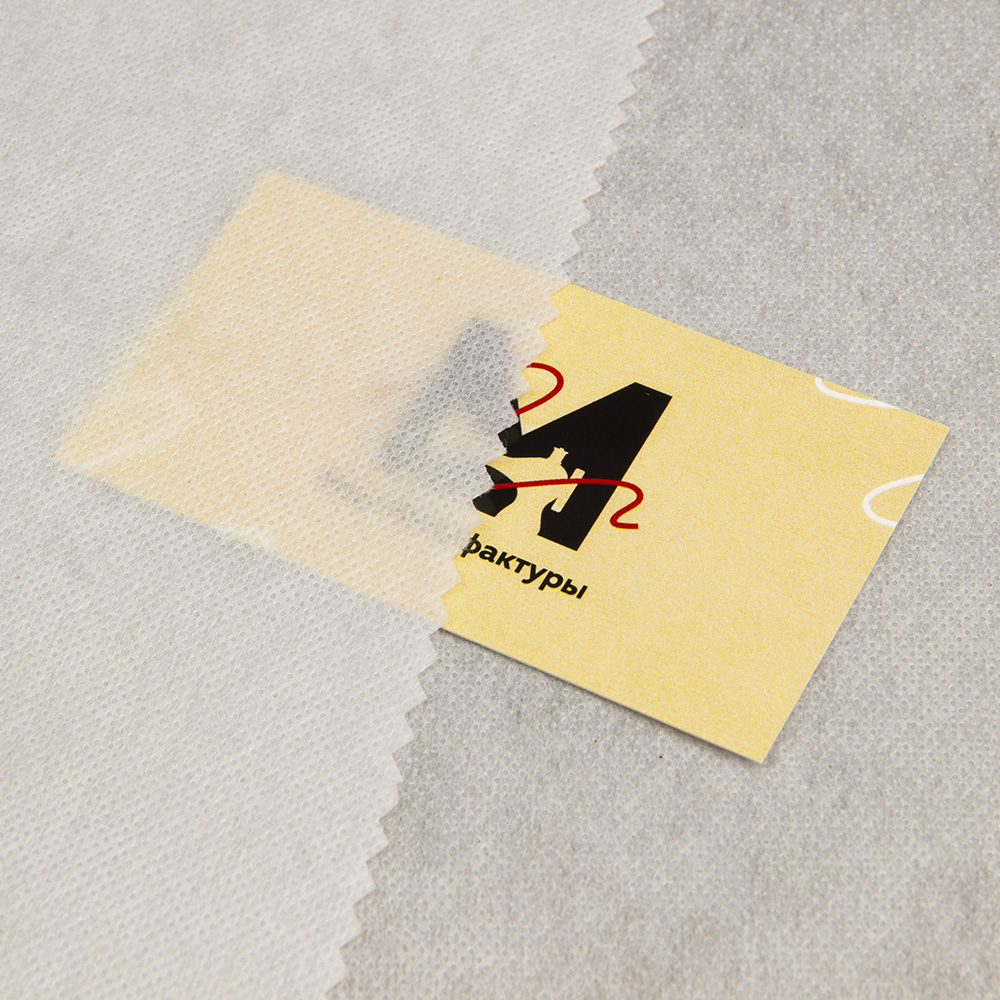 Нетканый, не растяжимый дублирующий материал с равномерным клеевым покрытием.