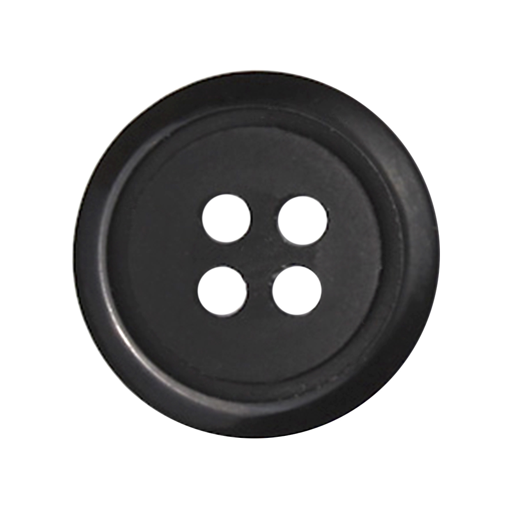 Пуговица пластиковая на четыре прокола с ободком, используется в качестве застежки, а также для отделки и украшения изделия.У нас в наличии Пуговица пластик 729-18L черный, артикул 00002282 в отличном качестве.