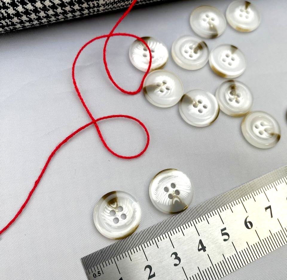 Пуговица пластик 104 24L прозрачный/белый/коричневый (15 мм)