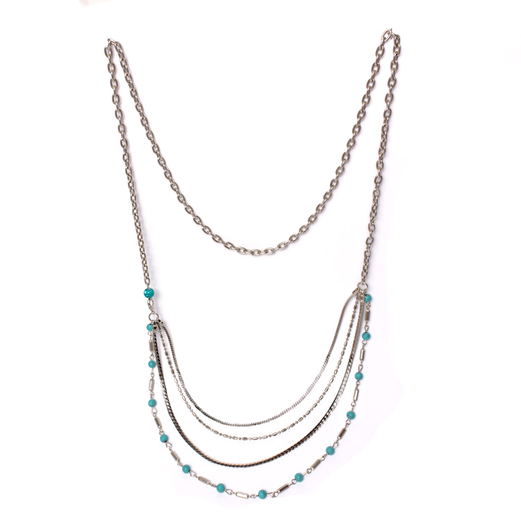 Пояс — элемент одежды, аксессуар представляющий собой длинную металлическую цепочку с бусами бирюзового цвета.