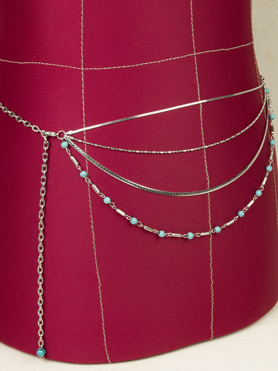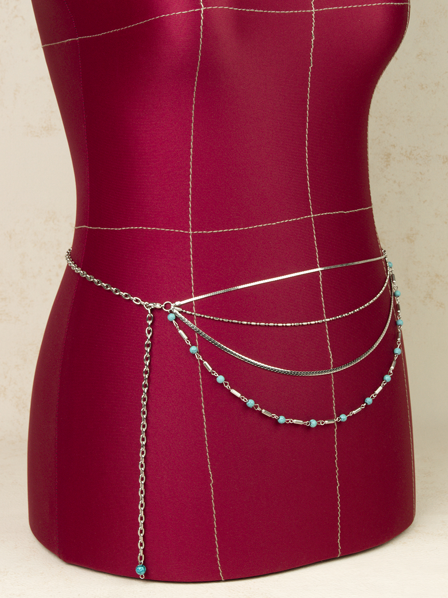 Материал: металлическая цепочка. Пояс — элемент одежды, аксессуар представляющий собой длинную металлическую цепочку с бусами бирюзового цвета. Пояса могут быть использованы исключительно как декоративный элемент одежды.У нас в наличии Пояс 5-17 металл/бирюза, артикул 00011433 в отличном качестве.