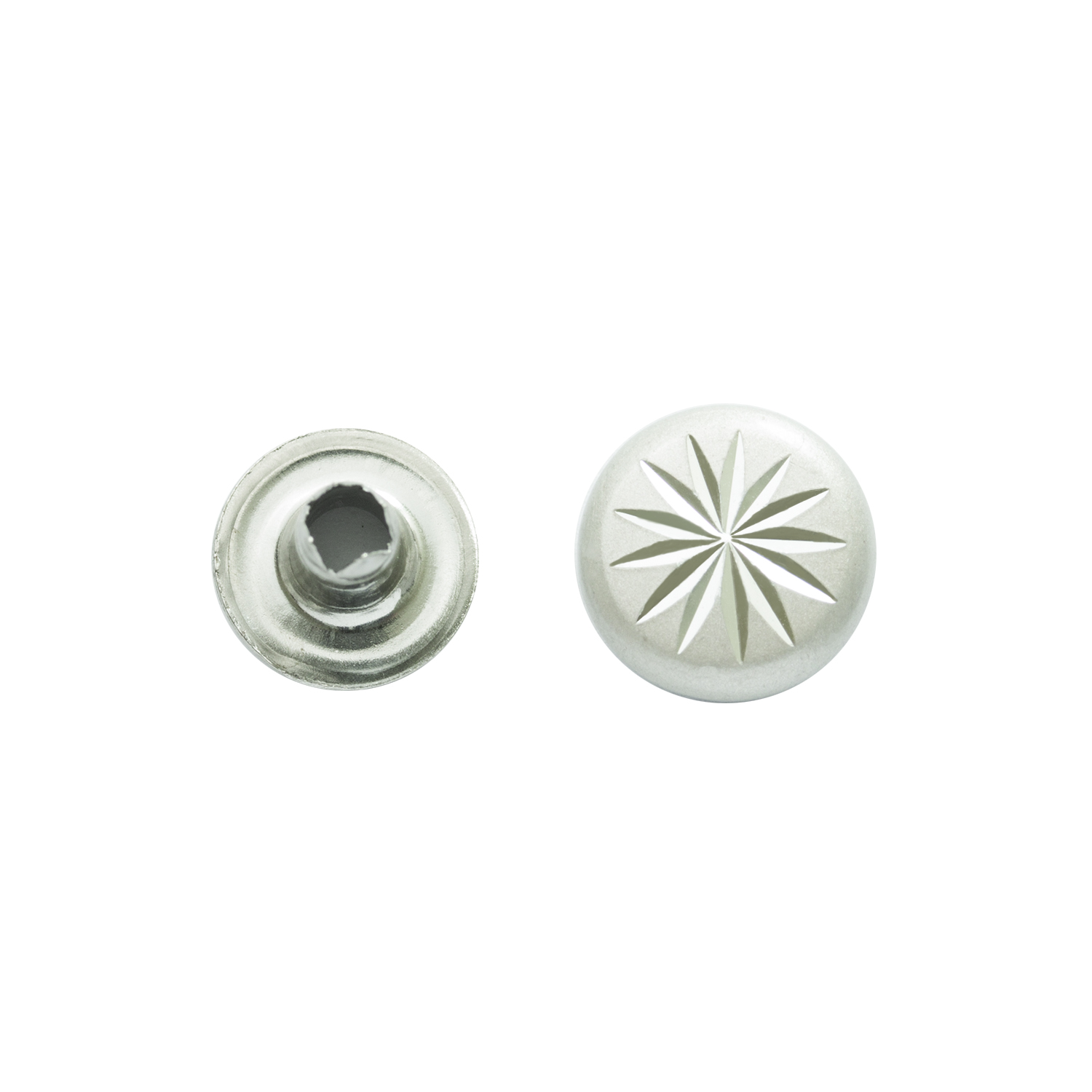 Хольнитен представляет собой заклепку, предназначенную для скрепления деталей одежды, прикрепления к ним фурнитутуры и декоративного оформления изделия. Хольнитены легко устанавливаются на швейное изделие как машинами, прессами, так и вручную, при этом не нужно заранее делать отверстие. В продаже имеются насадки. Хольнитены используются на джинсовые, кожгалантерейные изделия, обувь.У нас в наличии Хольнитены 799A-XD серебро, артикул 00003248 в отличном качестве.