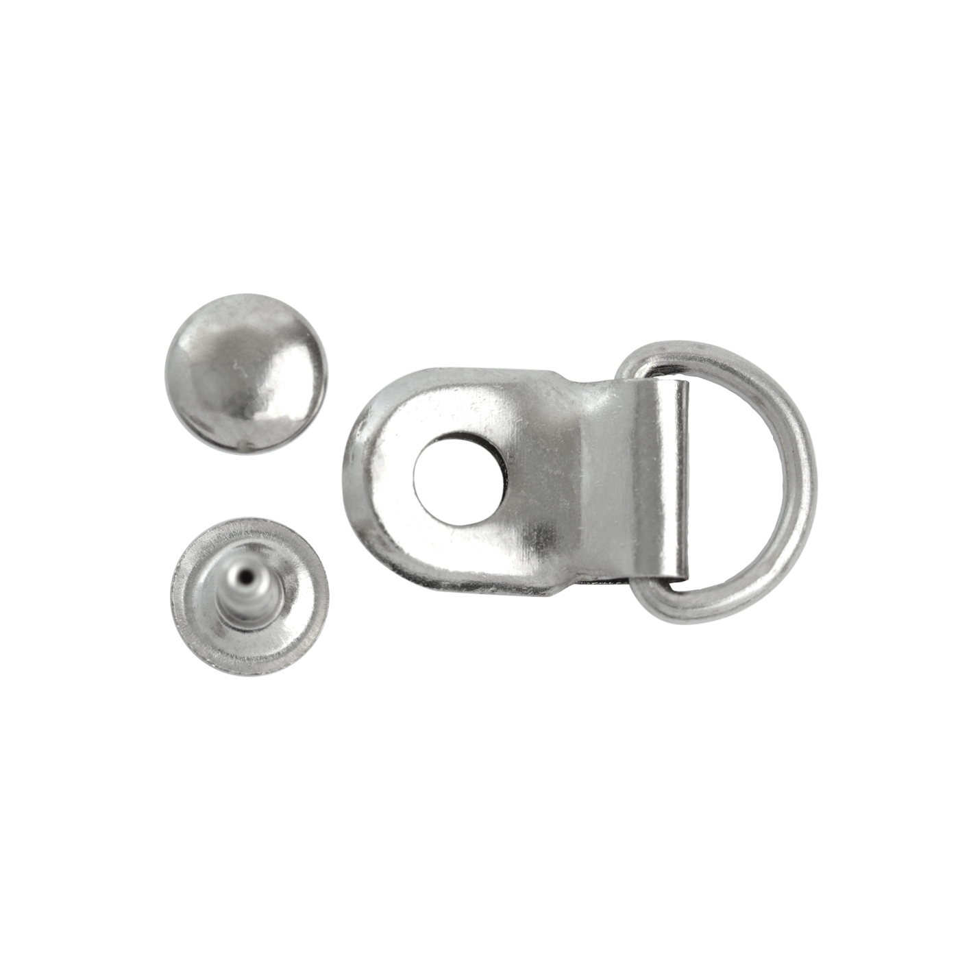 Хольнитен представляет собой заклепку, предназначенную для скрепления деталей одежды, прикрепления к ним фурнитутуры и декоративного оформления изделия. Хольнитены легко устанавливаются на швейное изделие как машинами, прессами, так и вручную, при этом не нужно заранее делать отверстие. В продаже имеются насадки. Хольнитены используются на джинсовые, кожгалантерейные изделия, обувь.У нас в наличии Металлическая петля с хольнитеном 2122-D никель, артикул 00000327 в отличном качестве.