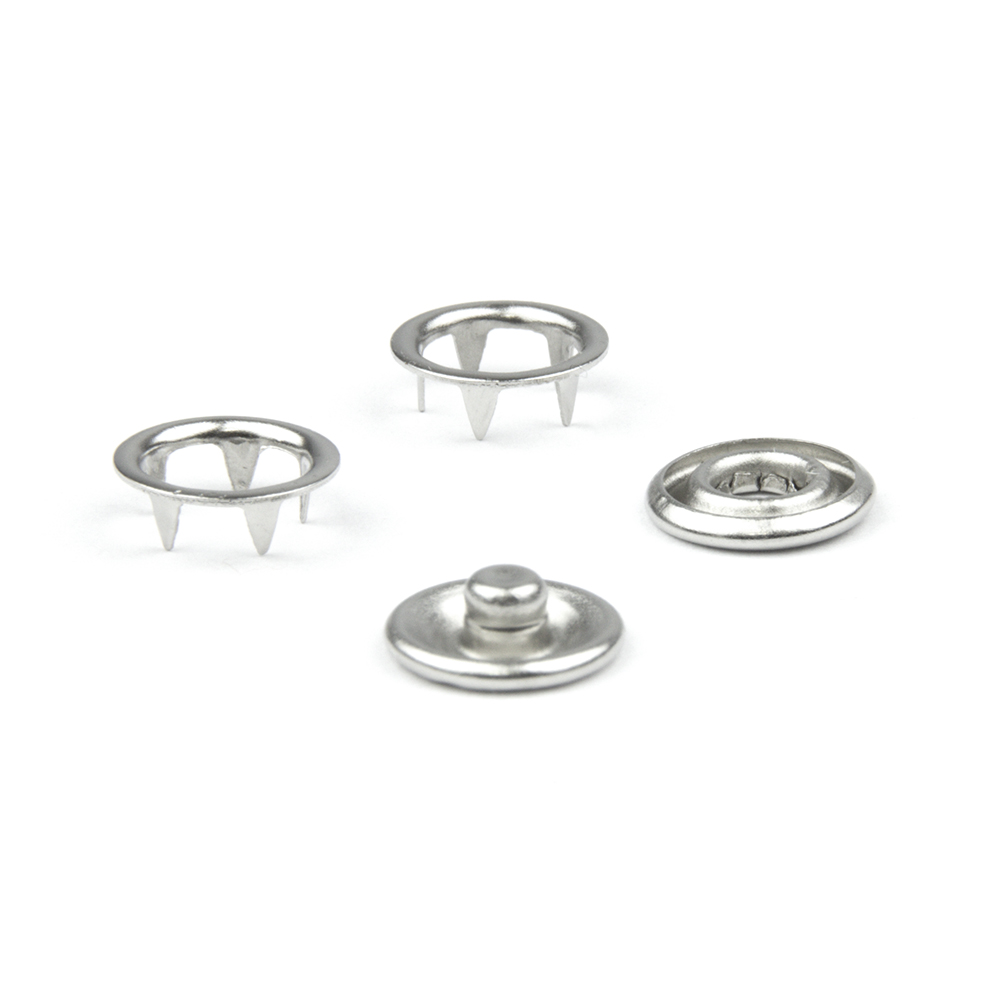 Клямерная кнопка является оригинальной застежкой, используется в широком диапазоне: в верхней одежде осенне-зимнего сезона, в джинсовом направлении, в легких изделиях. Для крепления к одежде имеет специальные зубчики.У нас в наличии Кнопки рубашечные 222 никель 10 мм, артикул 00031051 в отличном качестве.