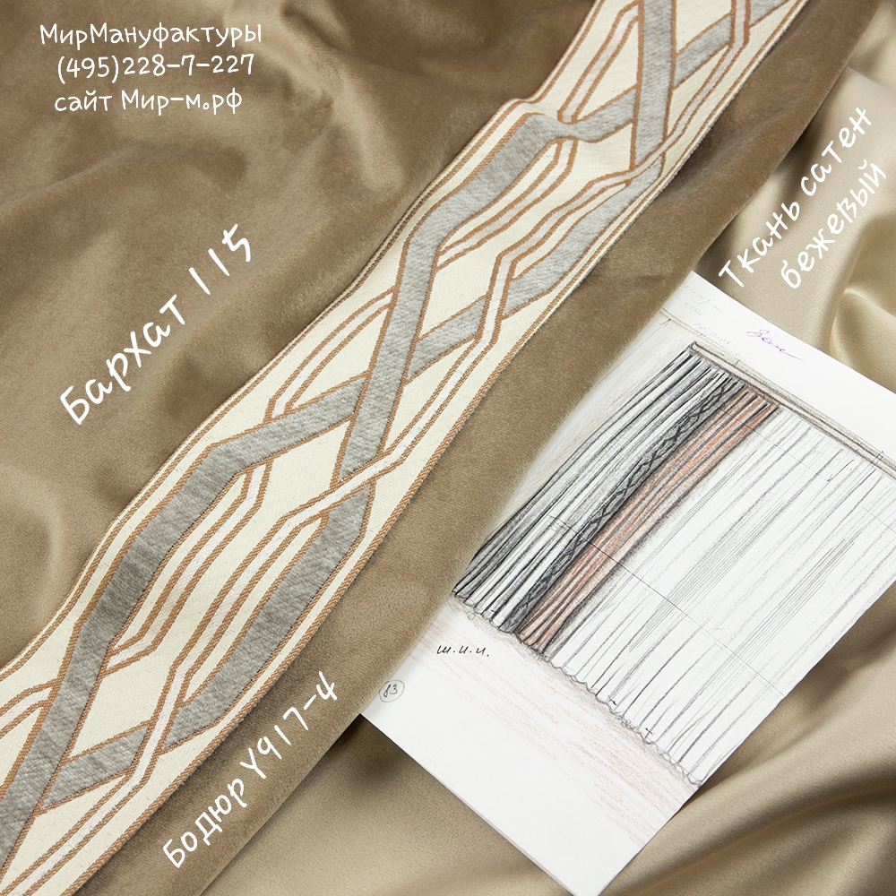 Особенность нашего бархата заключается в матовой фактуре, мягкости и высоте 3 метра. Бархат смотан в рулоны в одно сложение, по этому у нашего бархата нет заломов.У нас в наличии Ткань для штор "Бархат" 3102 V115 темно-бежевый 265 гр/м2, 300 см, артикул 00070884 в отличном качестве.Характеристики