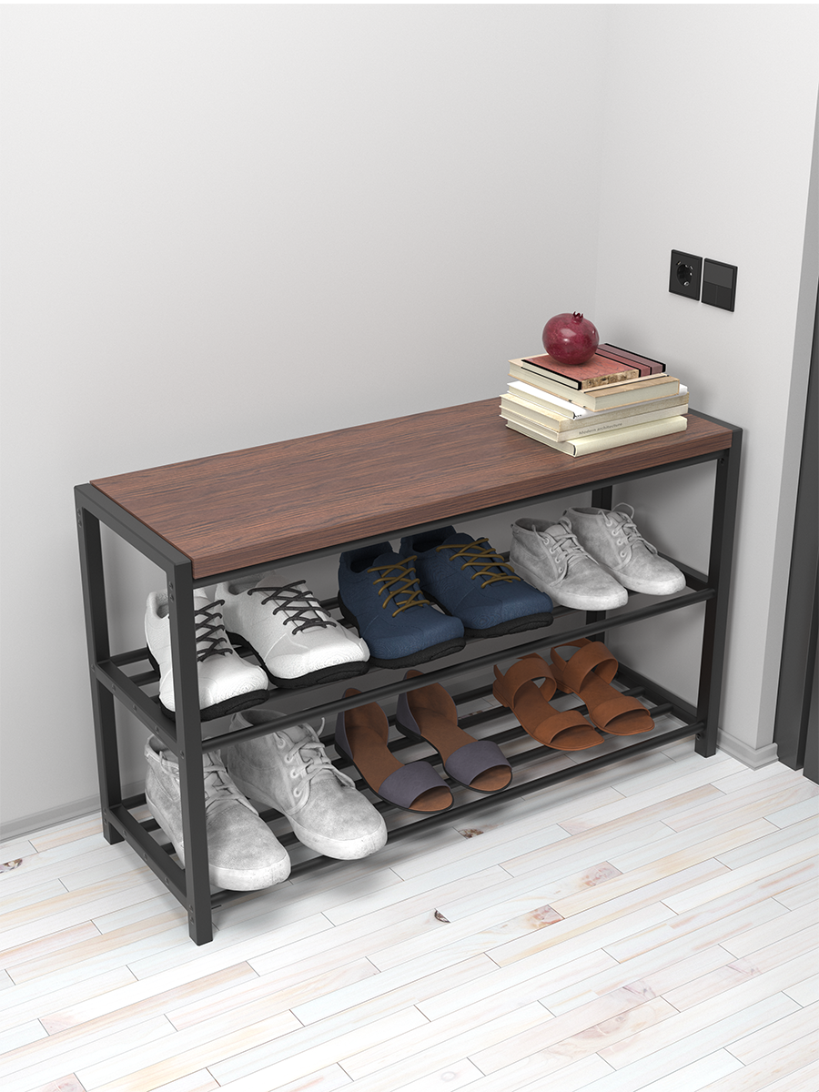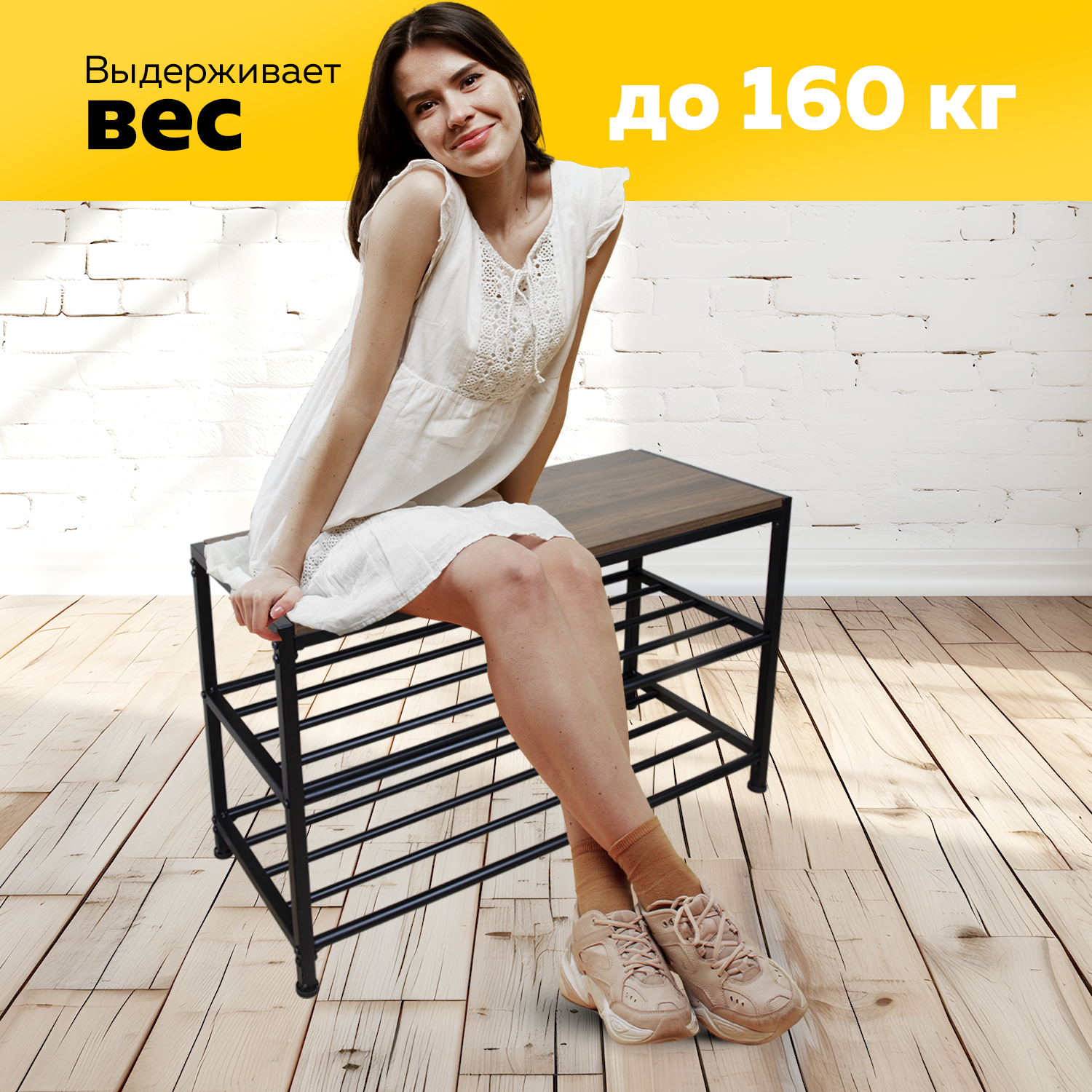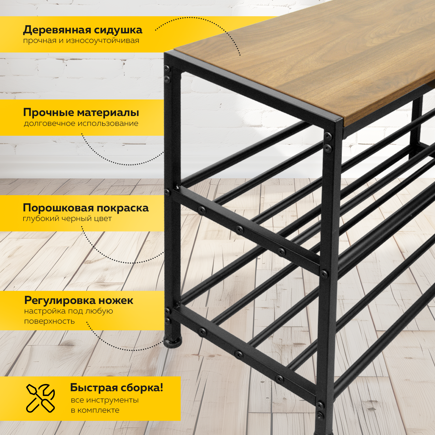 Обувницы - идеальное решение для хранения обуви. Обувница в прихожую для создания стильного интерьера в коридоре, гостиной или даже офисе. Уникальность этого изделия состоит в том, что оно сочетает в себе функции и обувной полки и сиденья, что делает его еще более удобным и практичным. Обувница с сиденьем представляет собой прочную конструкцию из высококачественных материалов, которая прослужит вам долгие годы. Обувница металлическая, изготовлена с использованием современных технологий и обработана порошковой черной краской, которая придает ей элегантный и современный вид. Стеллаж для обуви оснащен несколькими полками, которые позволяют удобно разместить вашу обувь и поддерживать порядок в гардеробе. Обувница в прихожую с сидением является стильным решением для хранения обуви.У нас в наличии Обувница металлическая с деревянной сидушкой HSD143 (76,5 * 30 * 49,5 см), артикул 00085792 в отличном качестве.